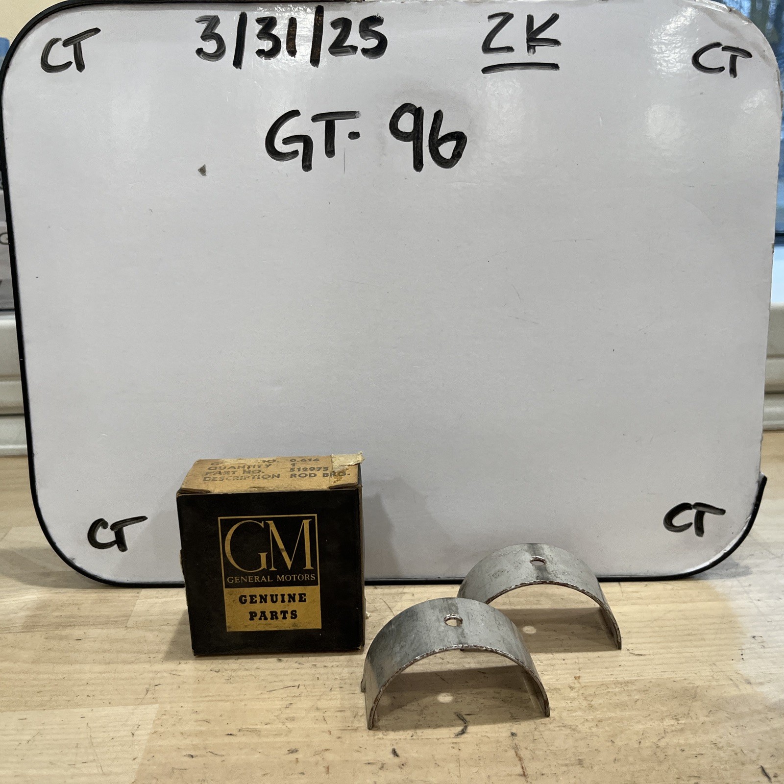 This is a NOS OE GM Connecting Rod Bearing with the part number 512975. It is a rod bearing designed for use in GM engines.