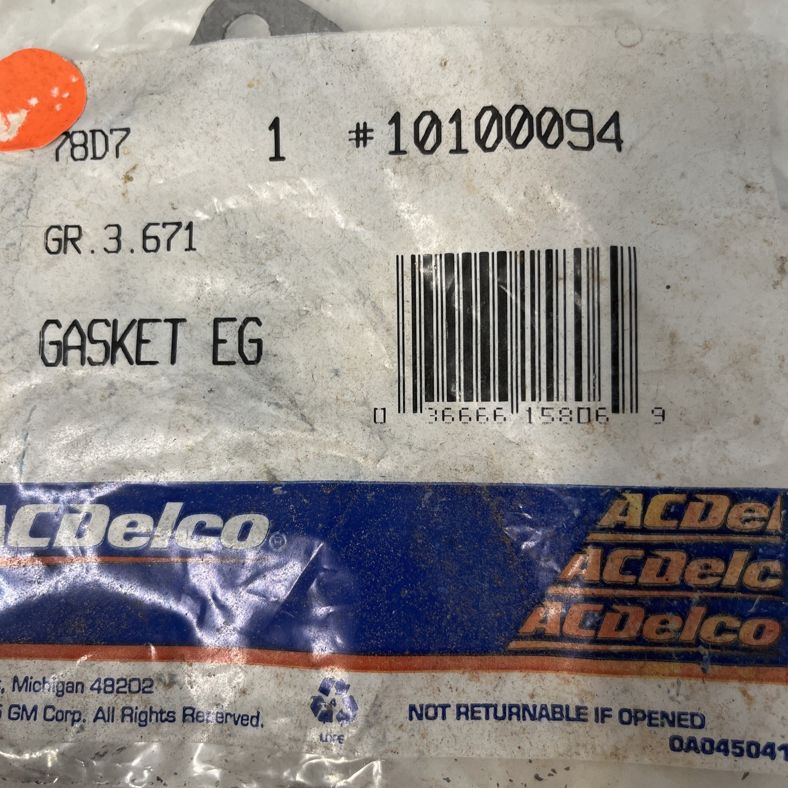NOS OEM ACDelco 219-323 EGR Valve Gasket GM 10100094