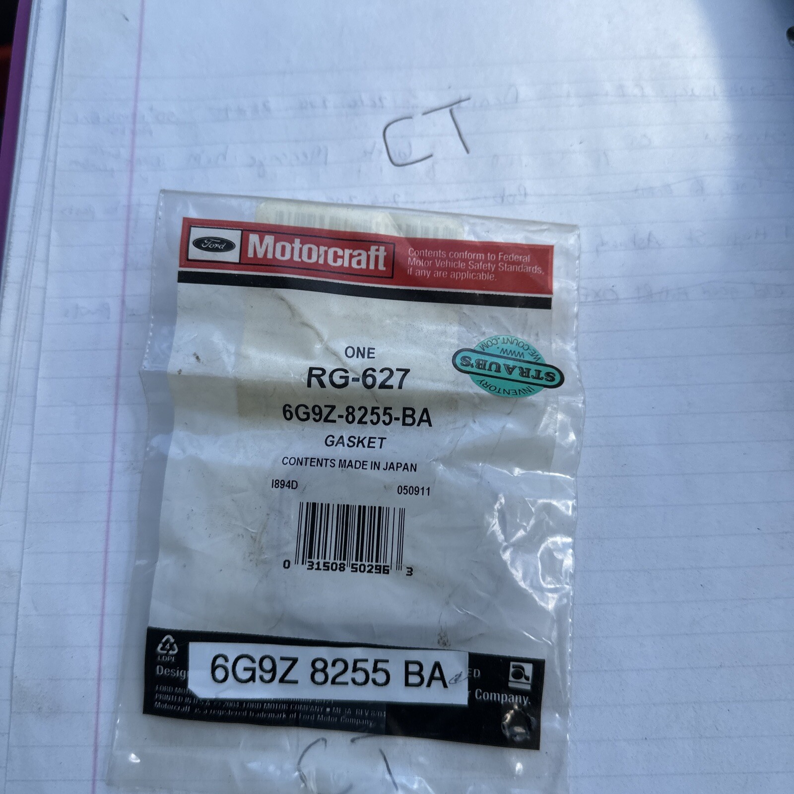This is a high-quality gasket for your Ford Motorcraft RG-627 engine. It is an OEM part number 6G9Z-255-BA and is made by Motorcraft. The gasket is designed to fit perfectly and provide a reliable seal for your engine.