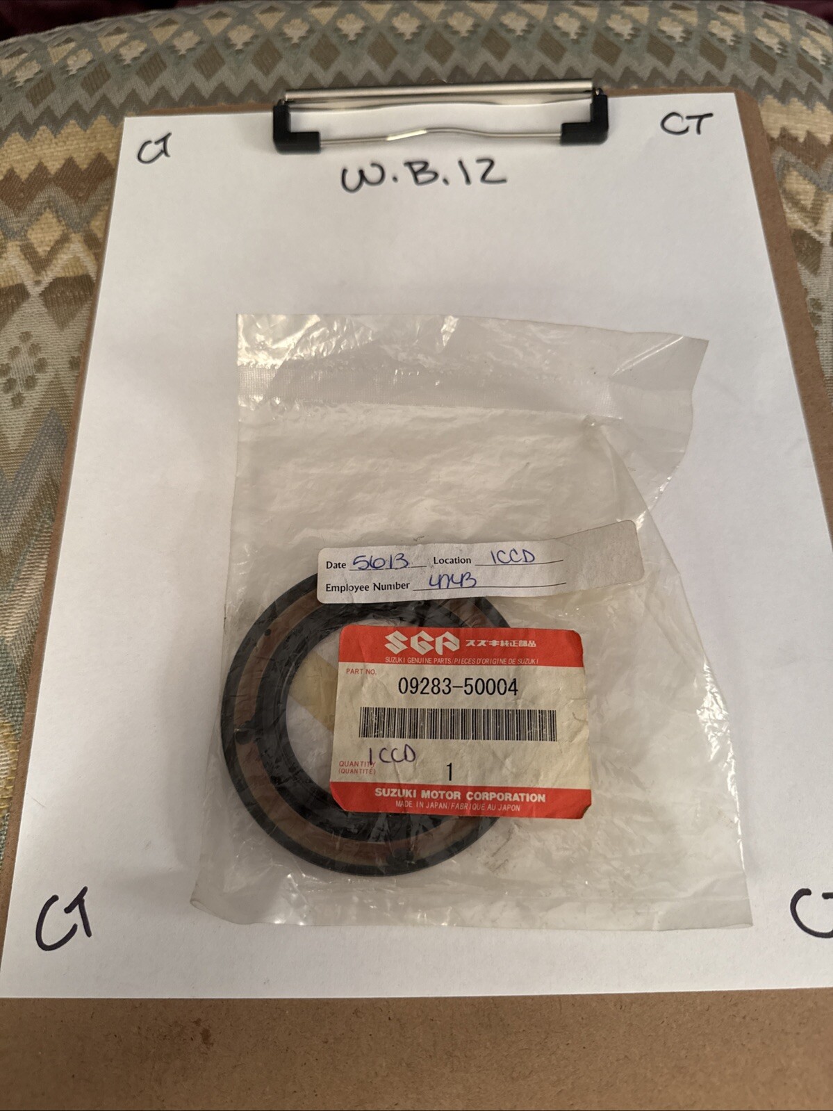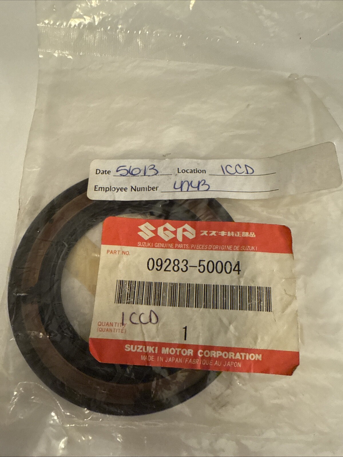 This is a NOS OEM Genuine Original Suzuki Dust Seal, part number 09283-50004. It is a vintage part made in the United States and is designed for Suzuki motorcycles. The product is a multicolor dust seal that is compatible with Suzuki models and is an authentic Suzuki part. It does not come with a warranty and is a non-modified, non-custom part.