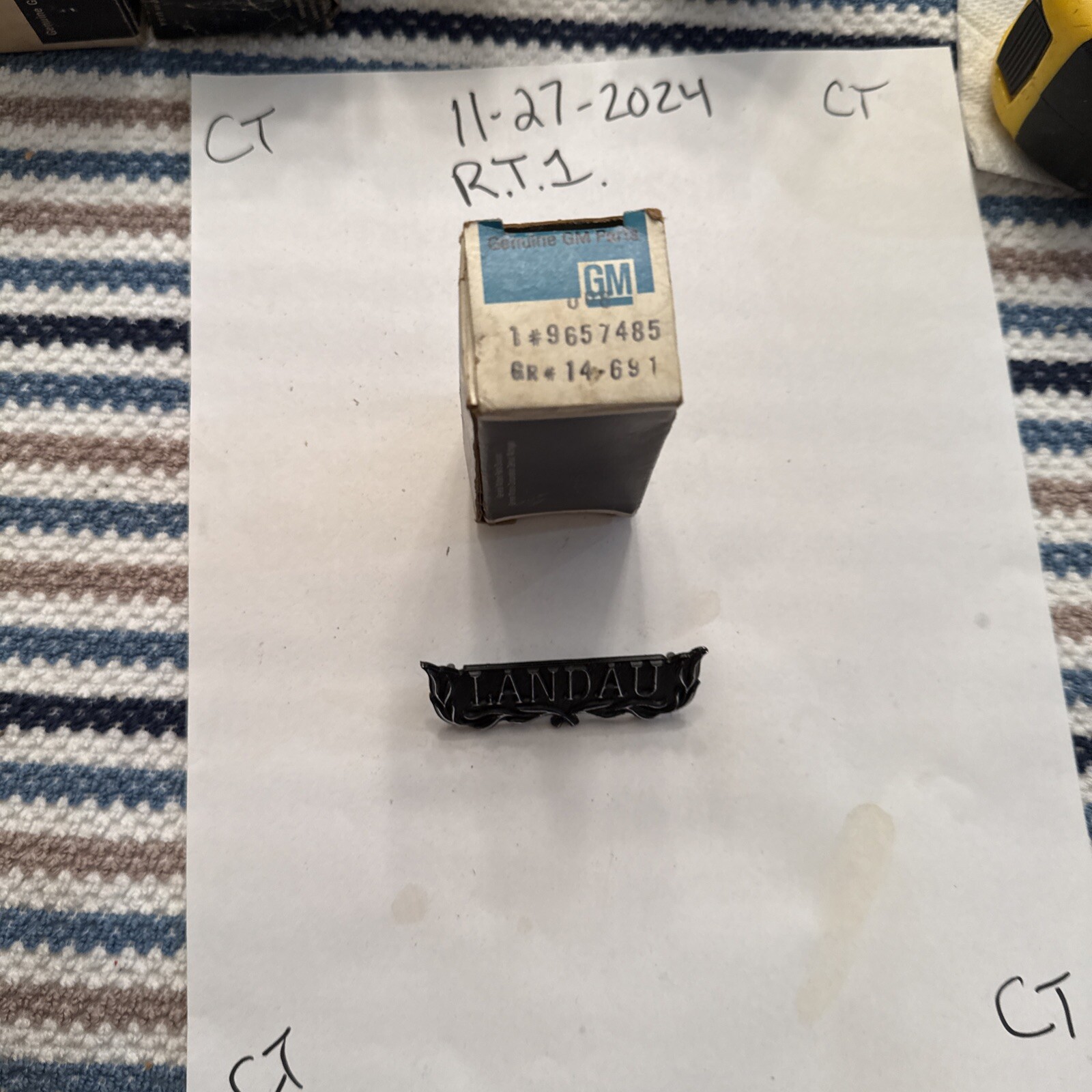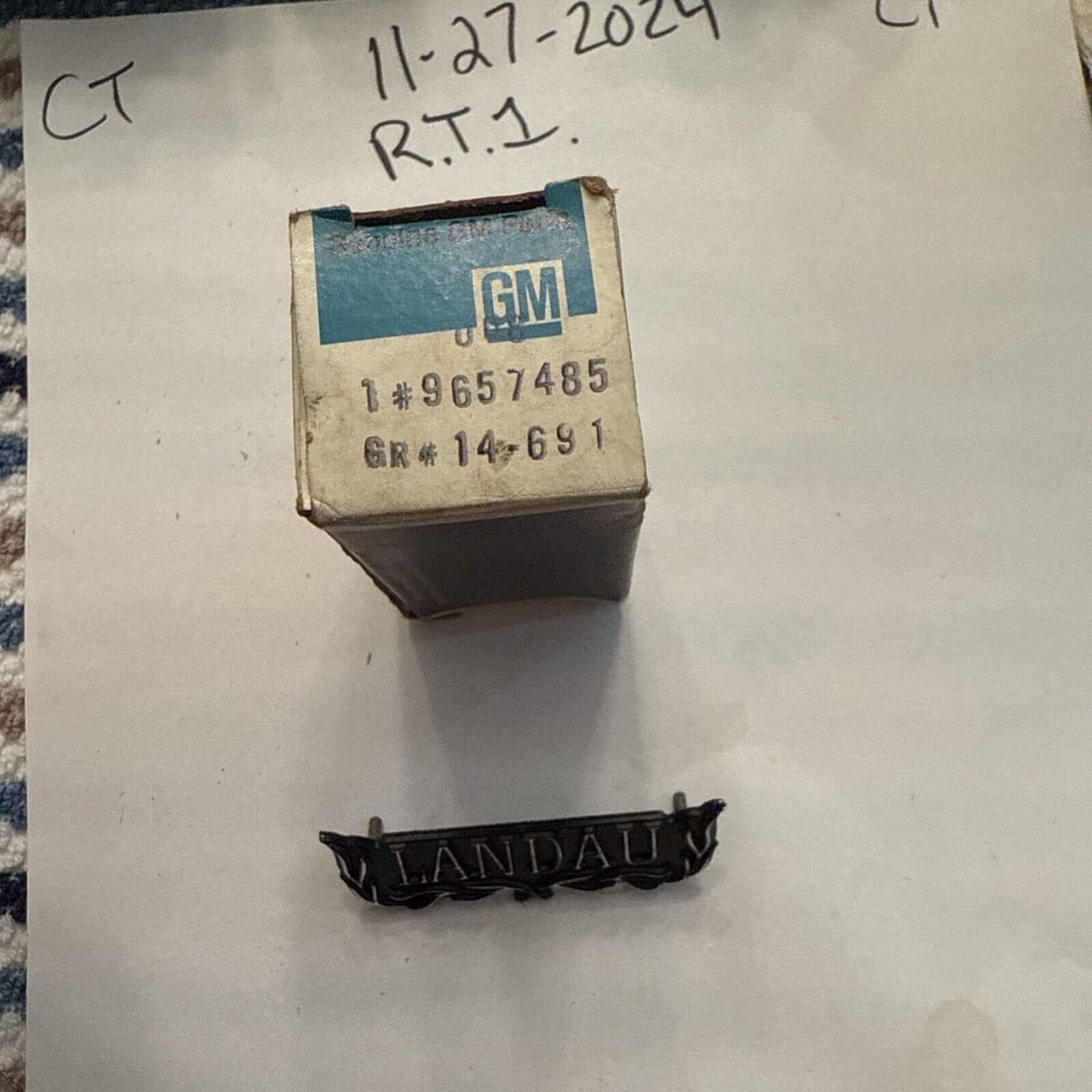 This is a NOS OEM GM emblem for a 1973-1975 Chevy Monte Carlo Landau. The emblem is made in the United States and has the manufacturer part number 9657485. It is a genuine brand part and has no warranty. The emblem is suitable for other parts and accessories in the eBay Motors category.