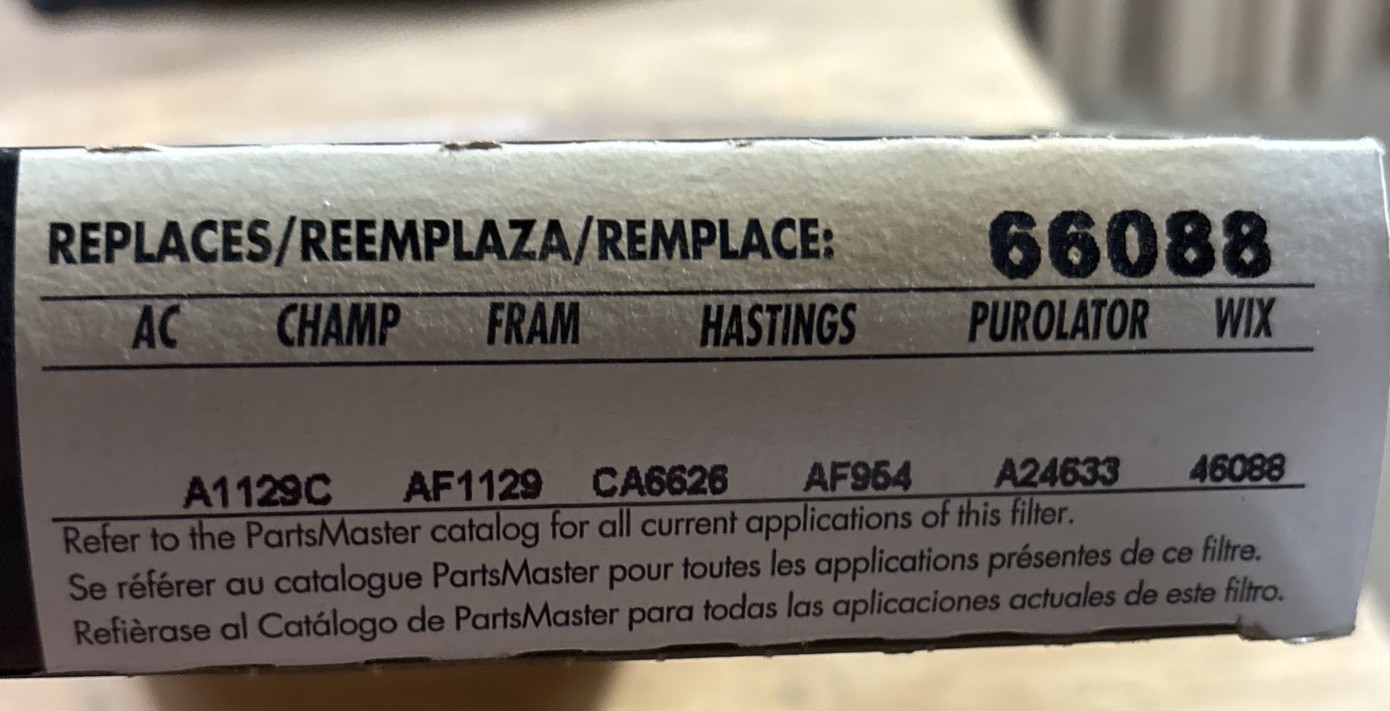 NOS Parts Master 66088 Air Filter Crosses To Wix 46088