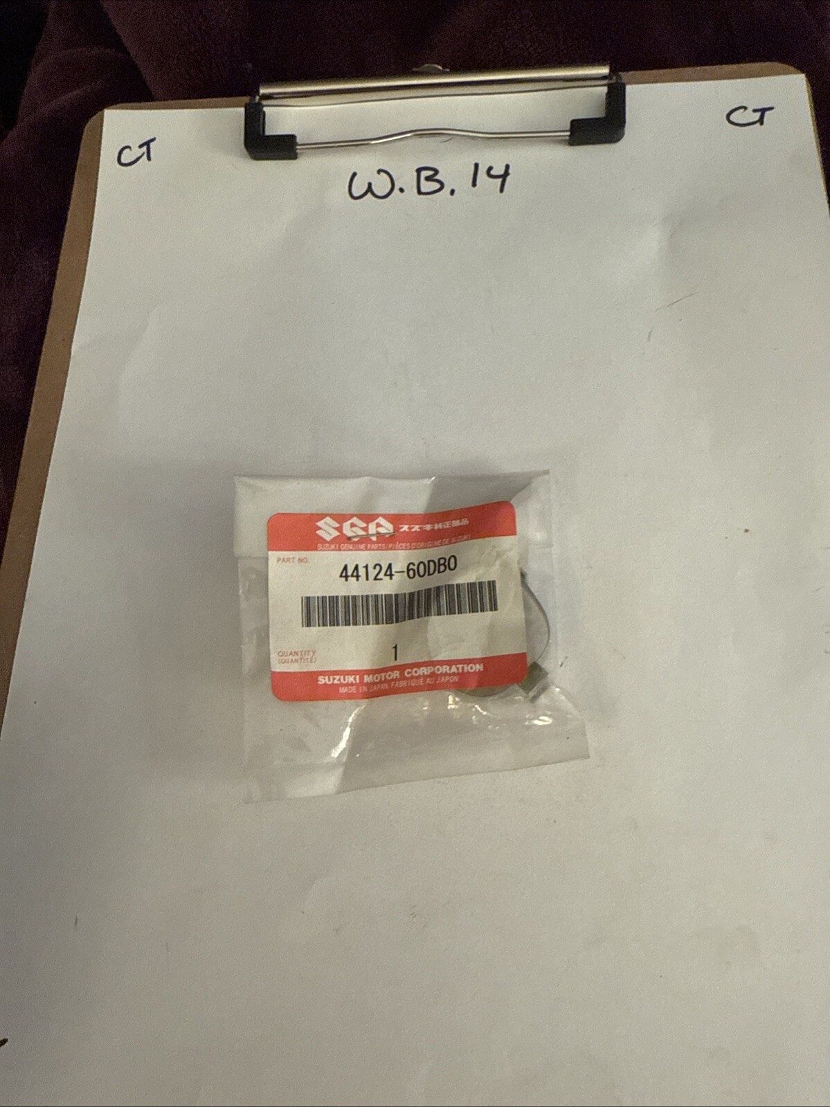 This product is a NOS Suzuki LTF4WD wheel side inner boot clamp with part number 44124-60DB0. It is designed for use on Suzuki LTF 4WD models and is a genuine Suzuki part. This clamp is essential for securing the inner boot on the wheel side of the vehicle, helping to maintain the integrity of the boot and prevent debris from entering the joint. It is a reliable and high-quality component that ensures the proper functioning of the wheel side assembly on the Suzuki LTF4WD.