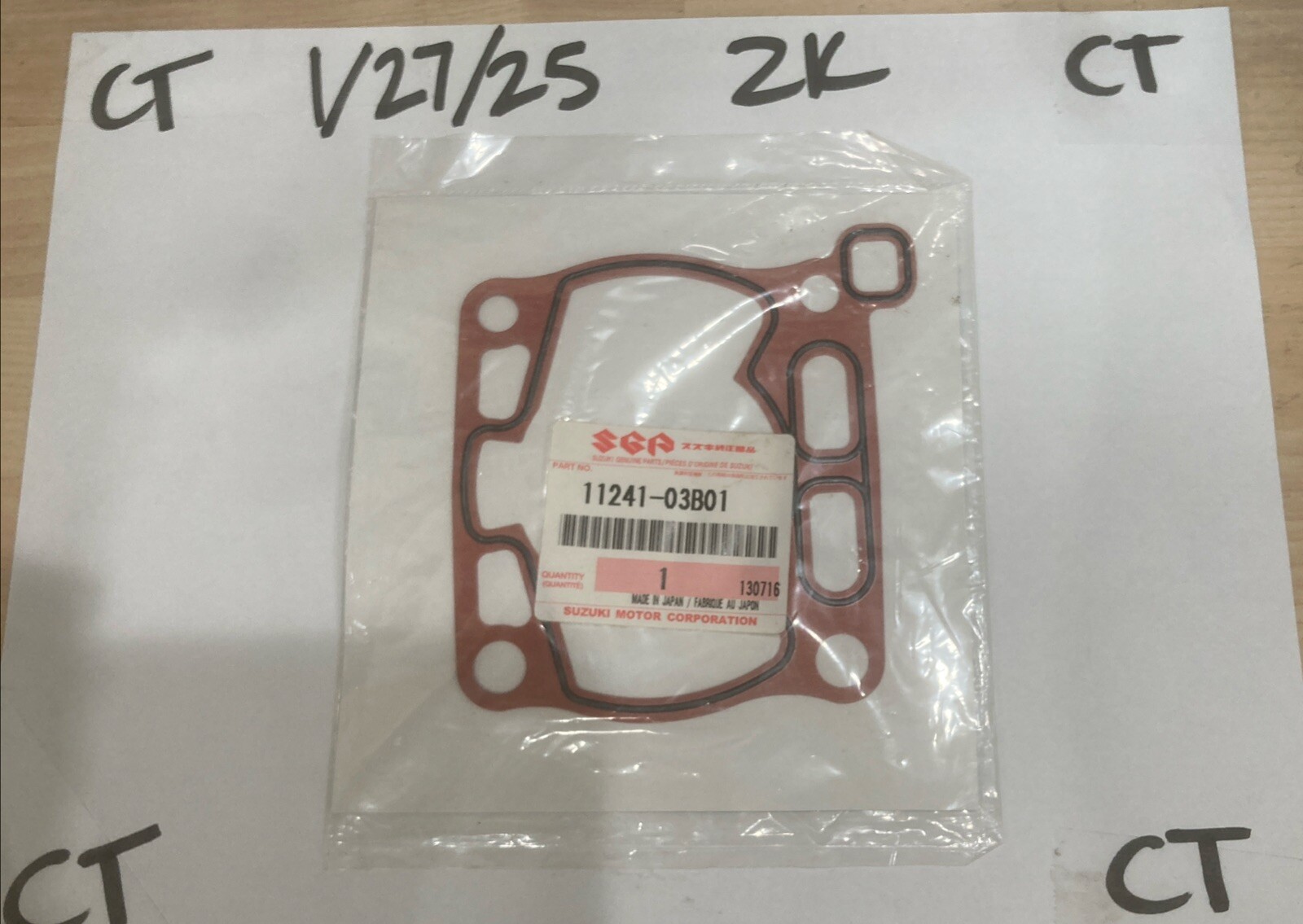 The product is a NOS (New Old Stock) Suzuki OEM Cylinder Gasket designed for specific Suzuki models including the 2002-2012 RM85 and 1986-1993 RM80. The part number for this gasket is 11241-03B01. This gasket is essential for maintaining the integrity of the cylinder in these Suzuki motorcycles, ensuring a proper seal and preventing any leakage of fluids. It is a genuine Suzuki part, guaranteeing a perfect fit and optimal performance for the specified models.