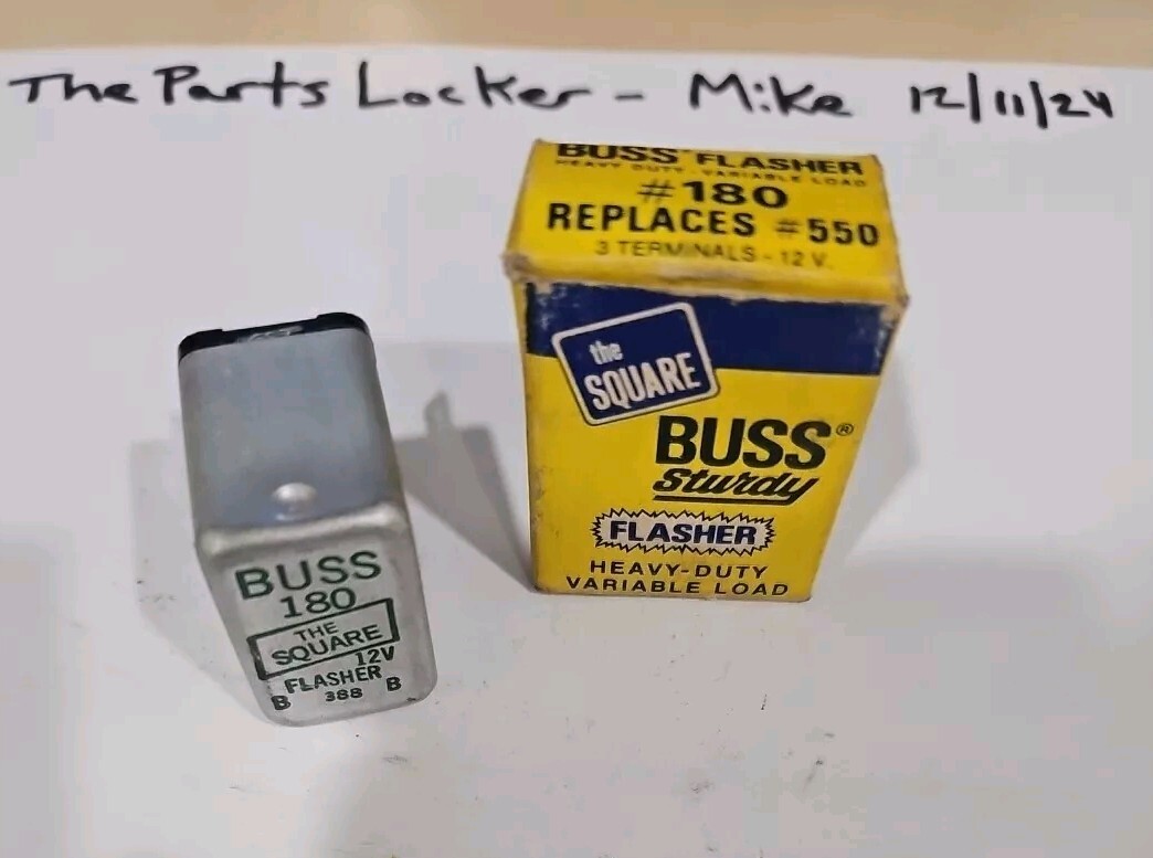 This is a NOS vintage turn signal flasher made by Signal-Stat. It is a 12V assembly with a plug-in mounting style. The part number is 180 and it replaces part number 550. The flasher is a turn signal light assembly and is designed for use in cars and trucks. It is an OEM part made in the United States.