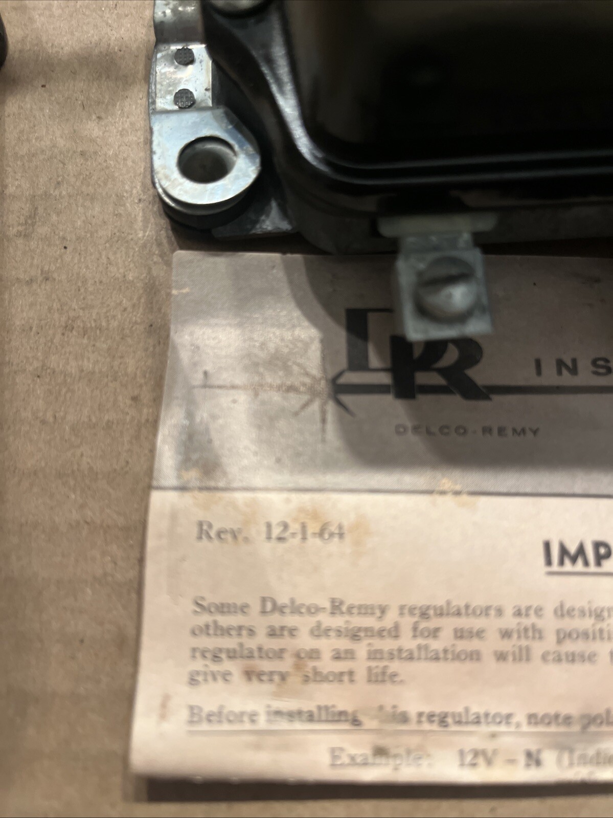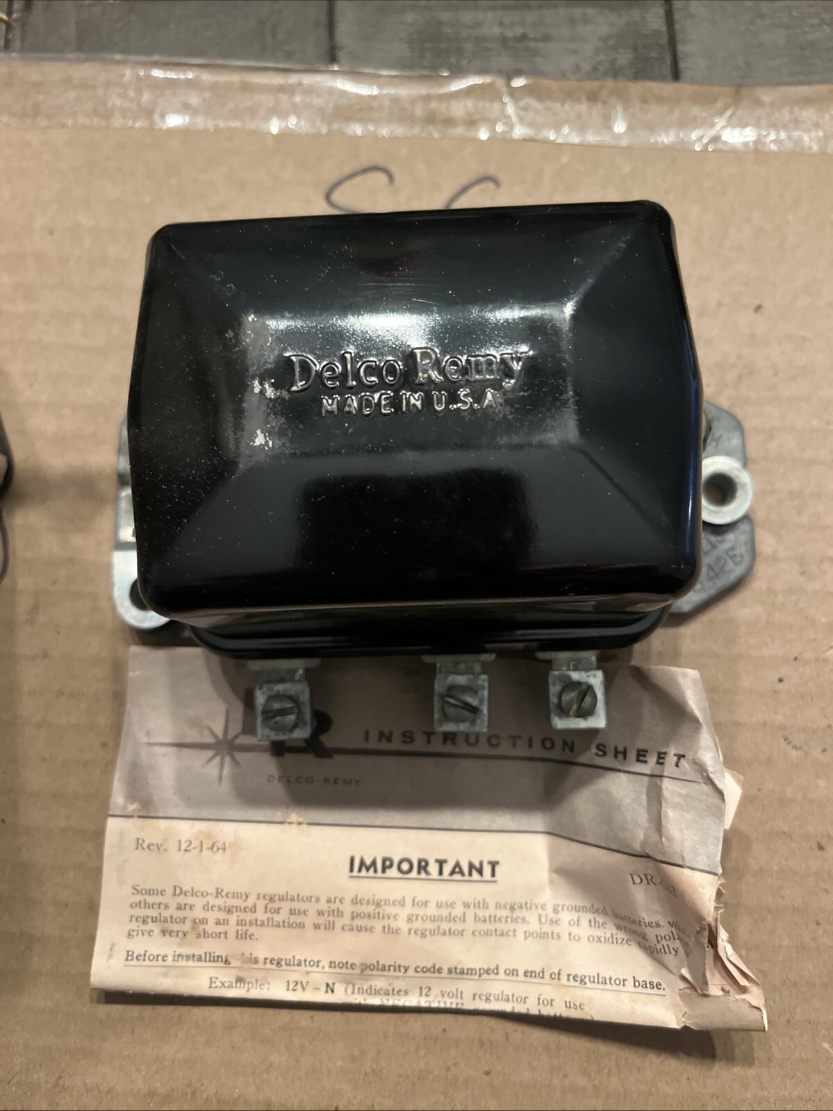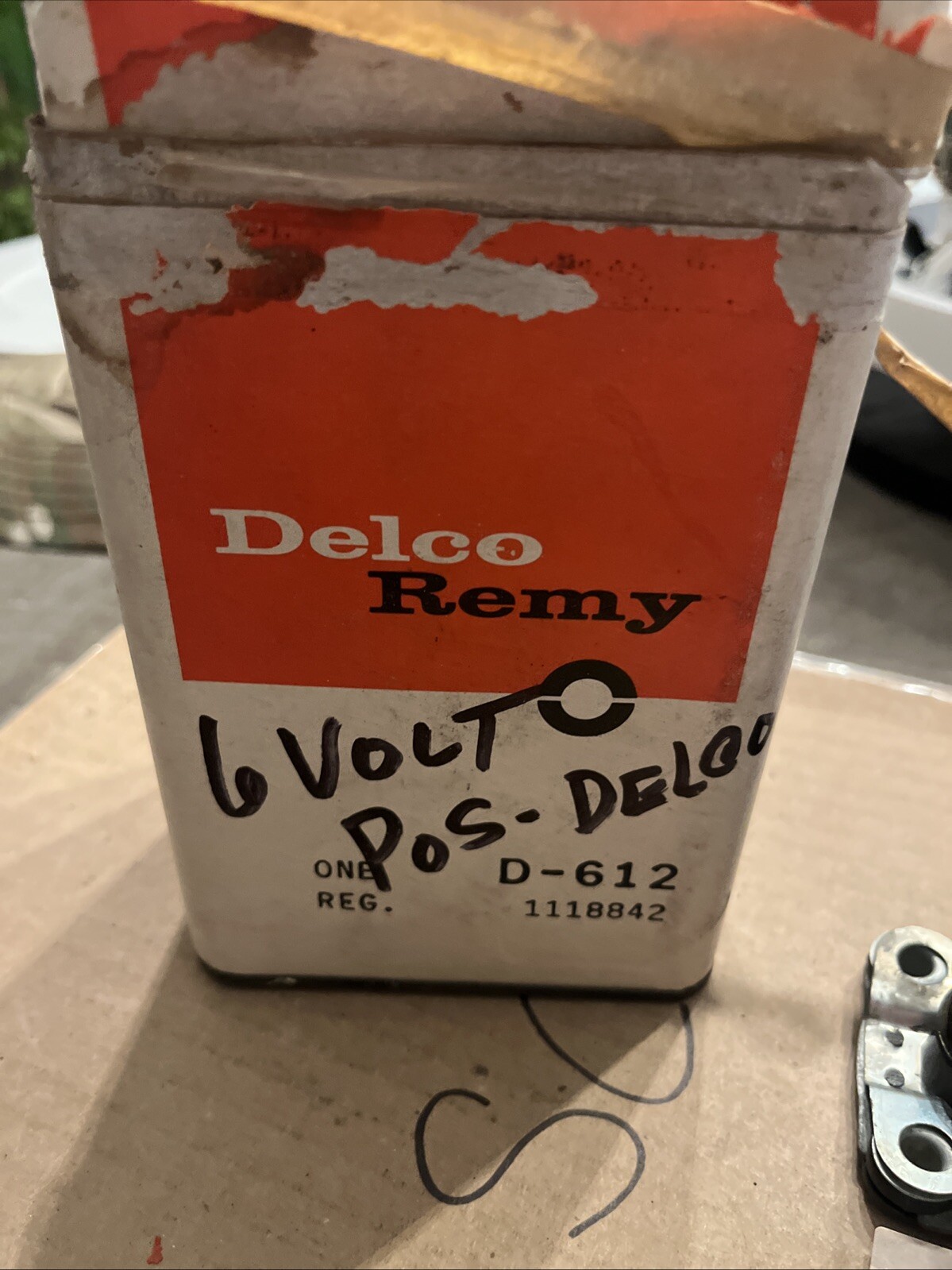 NOS Vintage Genuine GM 1118842 Delco Remy D-612 Voltage Reg 6V Pos Grd OEM (package opened, may have blush rust, patina, etc due to age)
