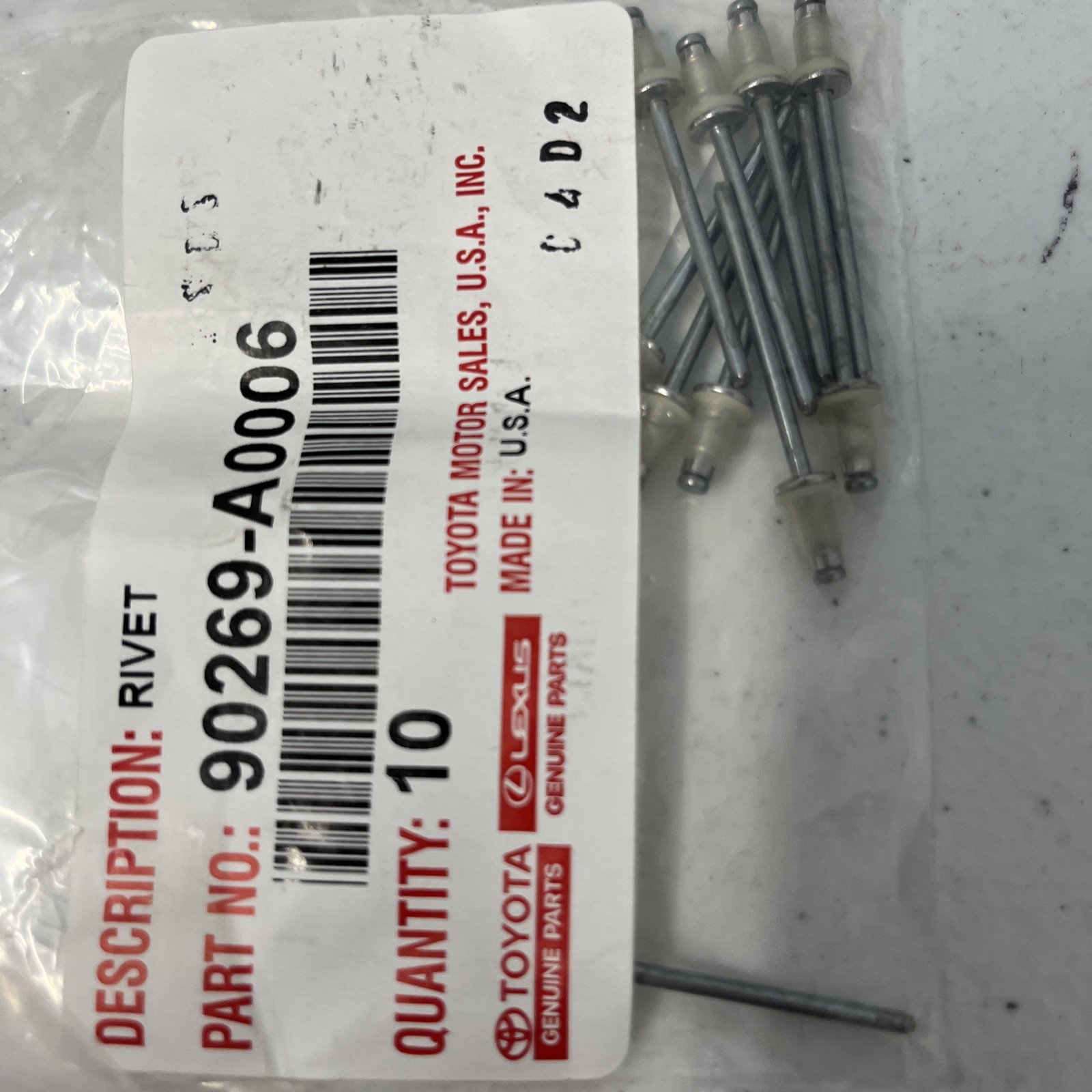 OEM 10pcs Genuine Toyota Aluminium Rivet with Cap Repair 90269-A0006. Condition is New. Shipped with USPS Ground Advantage.