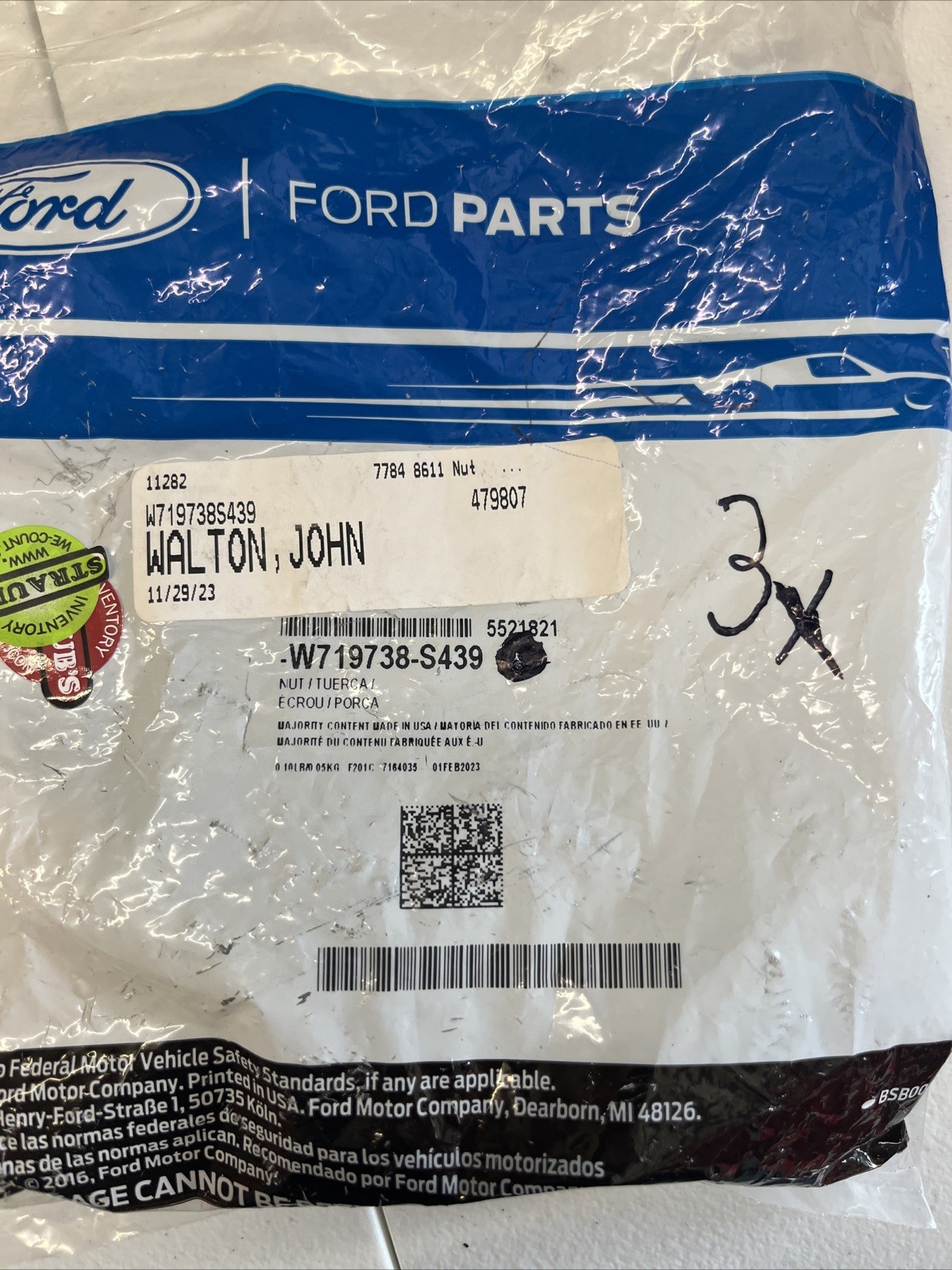 OEM Genuine Ford W719738-S439 Nut Spring Set 3X