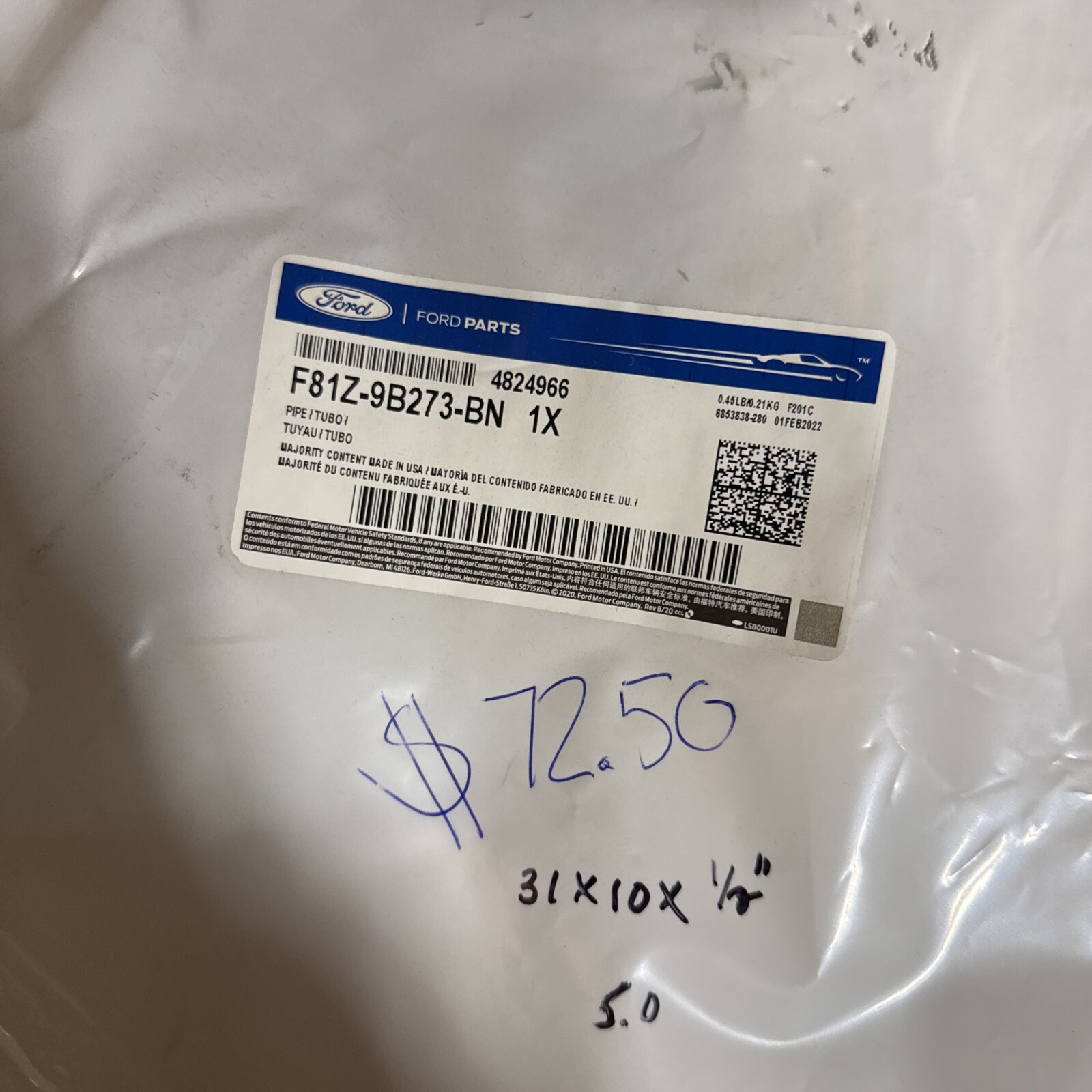 OEM NEW Fuel Return Hose Pipe Right Side Super Duty F81Z-9B273-BN