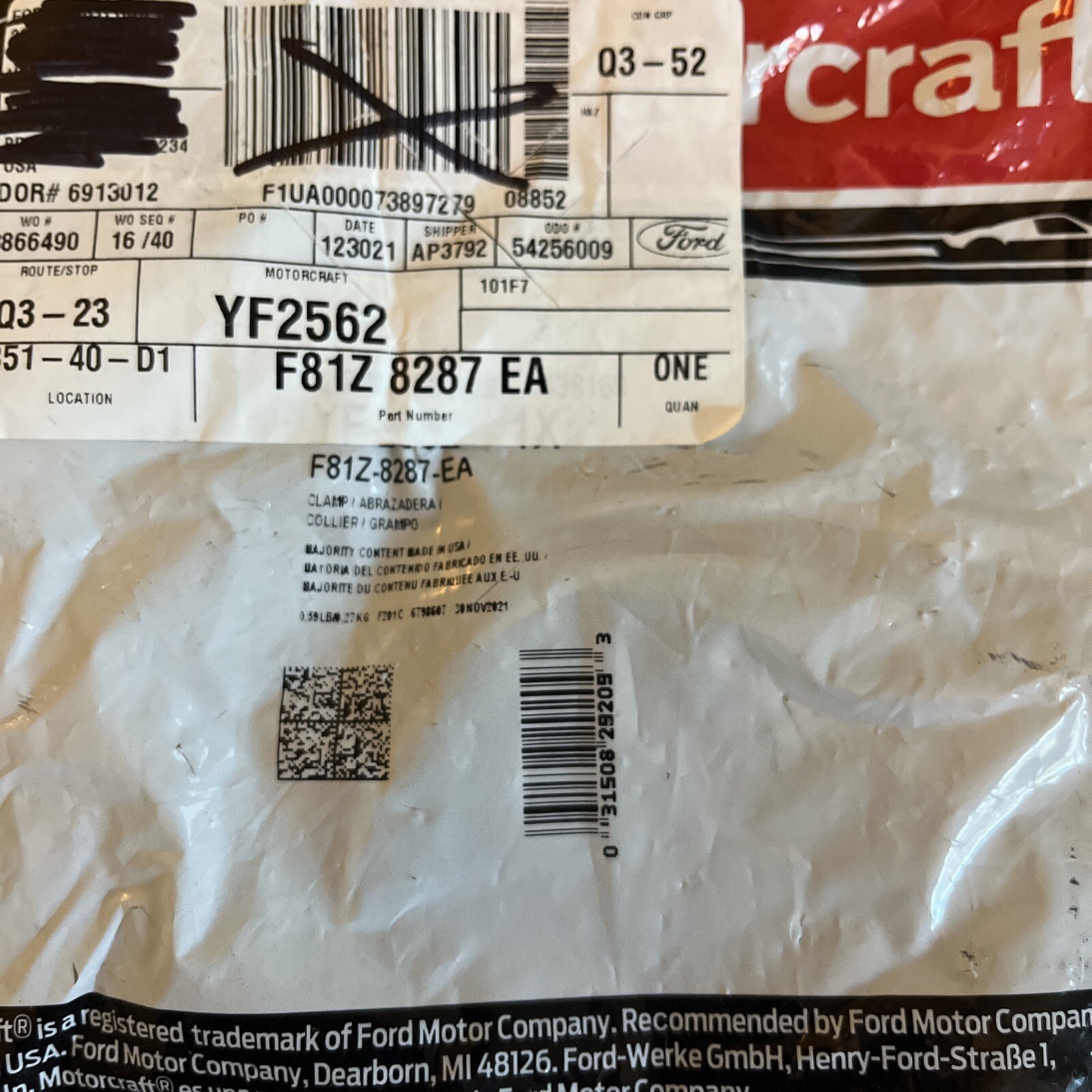 | Manufacturer Part Number | F81Z-8287-EA, YF-2562 |