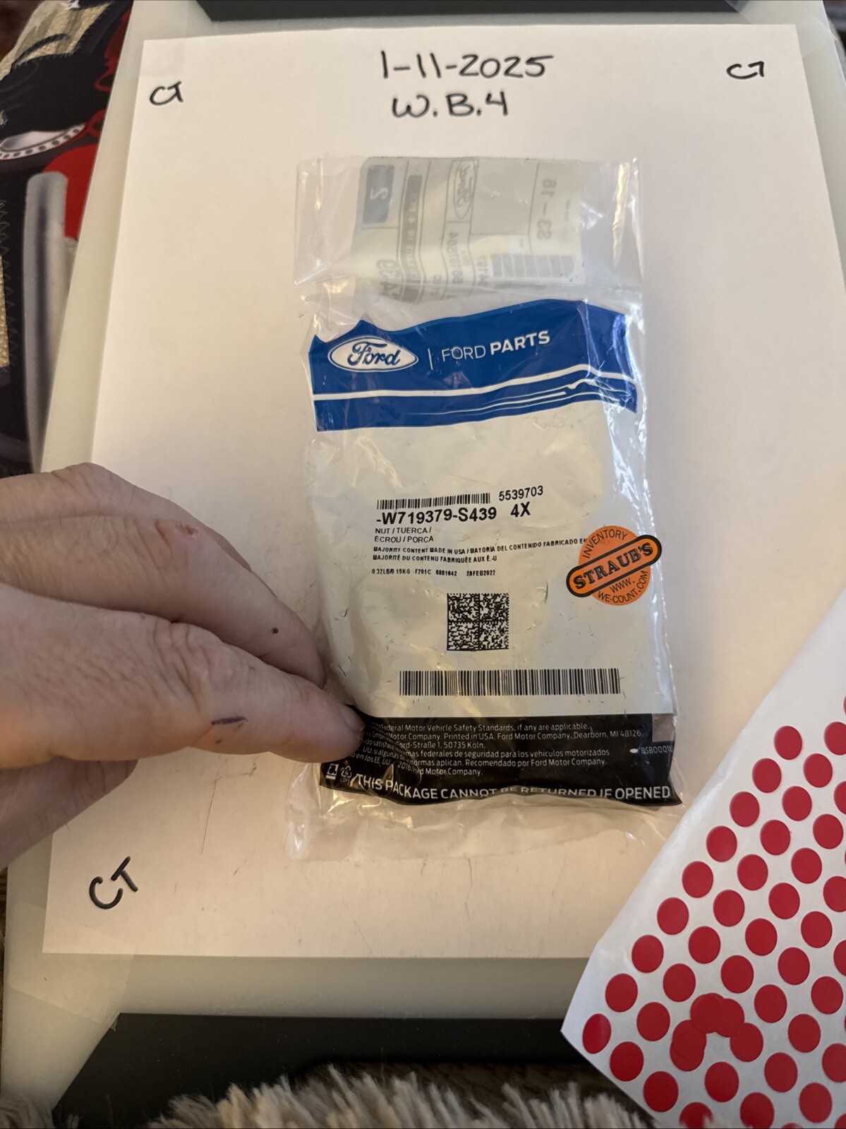 The product is a set of four OEM Ford bed nuts with the manufacturer part number W719379-S439 included. The item is Type OE (original equipment) and includes mounting hardware for installation. Specifically designed for Ford vehicles, these bed nuts are essential components for securing the truck bed in place. The high-quality construction and compatibility with Ford models make these bed nuts a reliable choice for maintaining and repairing the truck bed.