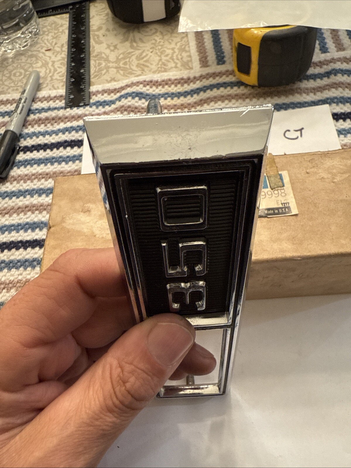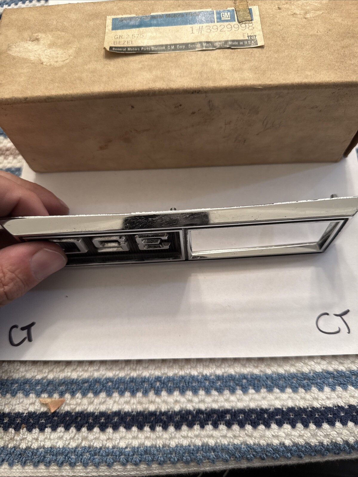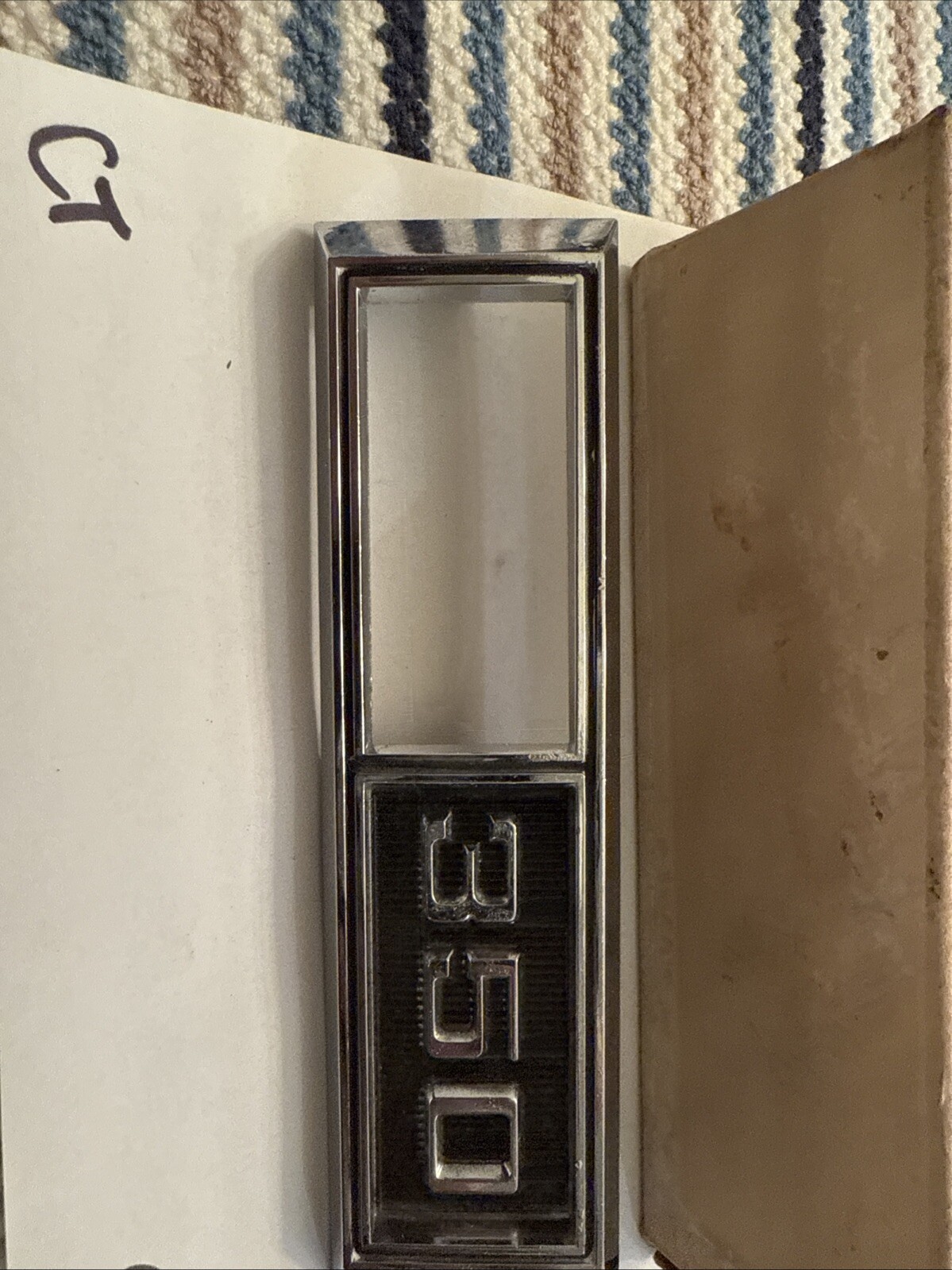 This is an original 1969 Chevrolet Nova 350 RH fender bezel emblem, part number 3929998. It is a genuine OEM GM part that is brand new and has never been used before. This emblem is designed to fit on the fender bezel of a 1969 Nova 350 RH and is made to enhance the appearance of your car.