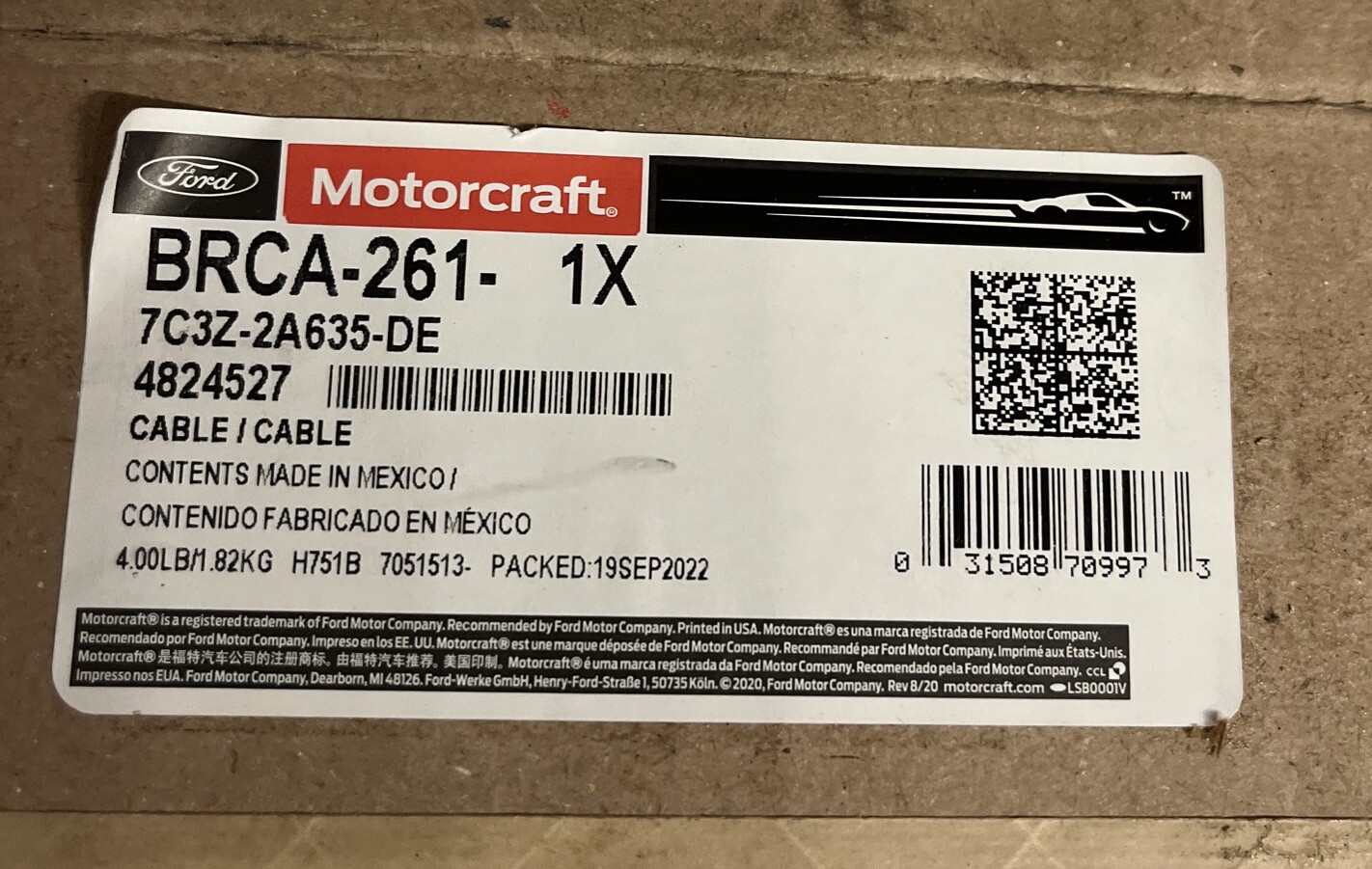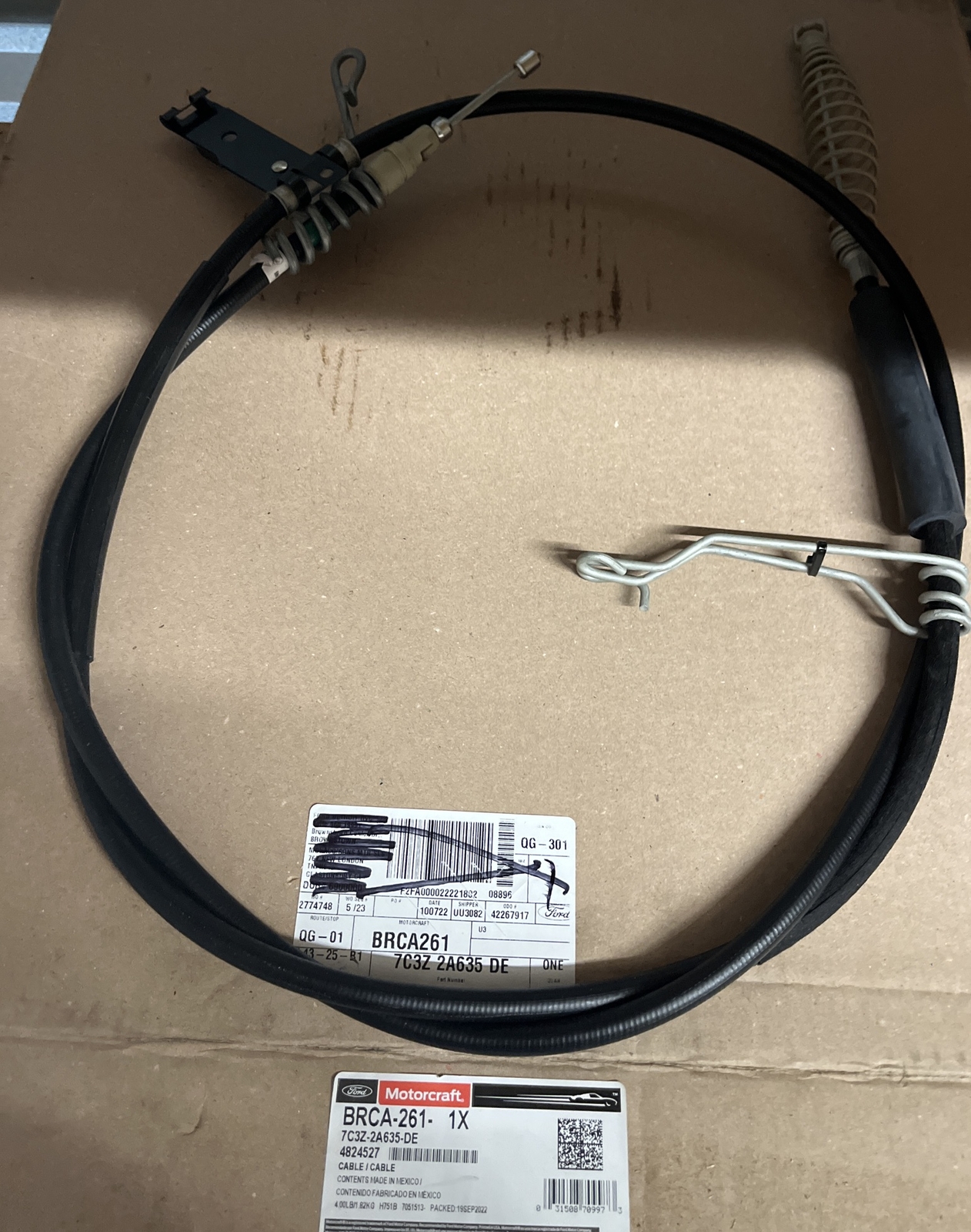 Parking Brake Cable Rear Right Motorcraft BRCA-261, 7C3Z-2A635-DE