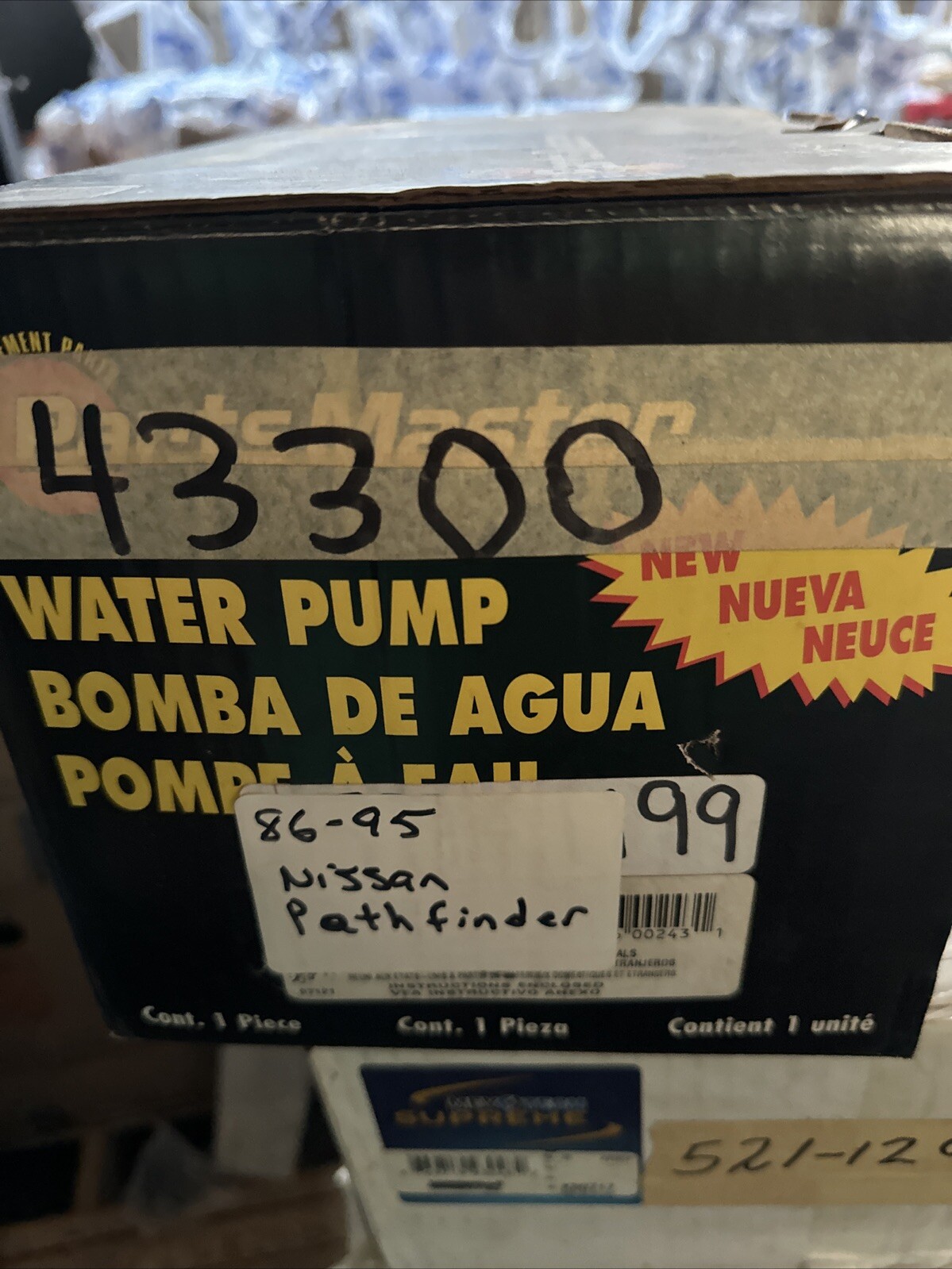 ASC WP-695, Beck/Arnley 131-2055, Bosch 98087, Eastern Catalytic 18-433, SKF PC695, Carter 51188, ACDelco 252-160, BorgWarner P-2502, Dayco DP920, Sealed Power PC692, GMB 150-1410, GMB GWN-41A, CARQUEST 51-1944, US Motor Works US9104, AISIN WPN-004, AISIN WPN004, Datsun/Nissan 2101012G25, Datsun/Nissan 2101012G26, Datsun/Nissan 2101012G27, Datsun/Nissan 2101012G28, Datsun/Nissan BA01012G26, Duralast CWP-695, Cardone New 5563119, Cardone Reman 571199, Hytec Automotive 323033, TRW FP1851, Worldparts 943300, Airtex AW9104, Parts Master 3-695, BORTEK 20547