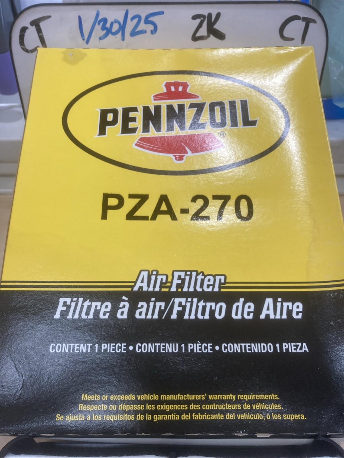 The Pennzoil Air Filter PZA-270 is a specific type of air filter manufactured by Pennzoil. This product is designed for use in vehicles to help filter the air that enters the engine, ensuring optimal performance and efficiency. With the manufacturer part number PZA-270, this air filter is likely designed to fit a specific range of vehicles for easy installation and compatibility. Pennzoil is a reputable brand known for producing quality automotive products, making this air filter a reliable choice for those looking to maintain their vehicle's air and fuel delivery system.