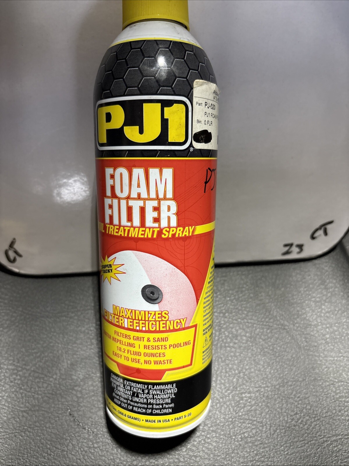 The product is a PJ1 Foam Air Filter Oil Treatment Aerosol Spray in a 13oz can, with a manufacturer part number of 5-20. Designed for automotive tools and supplies, this product is ideal for treating foam air filters to improve performance and longevity. The aerosol spray application makes it easy to evenly distribute the oil treatment on the filter, helping to trap more dirt and debris for better engine protection. Perfect for maintaining and servicing air filters, this PJ1 product comes in a pack of 1 for convenient use.