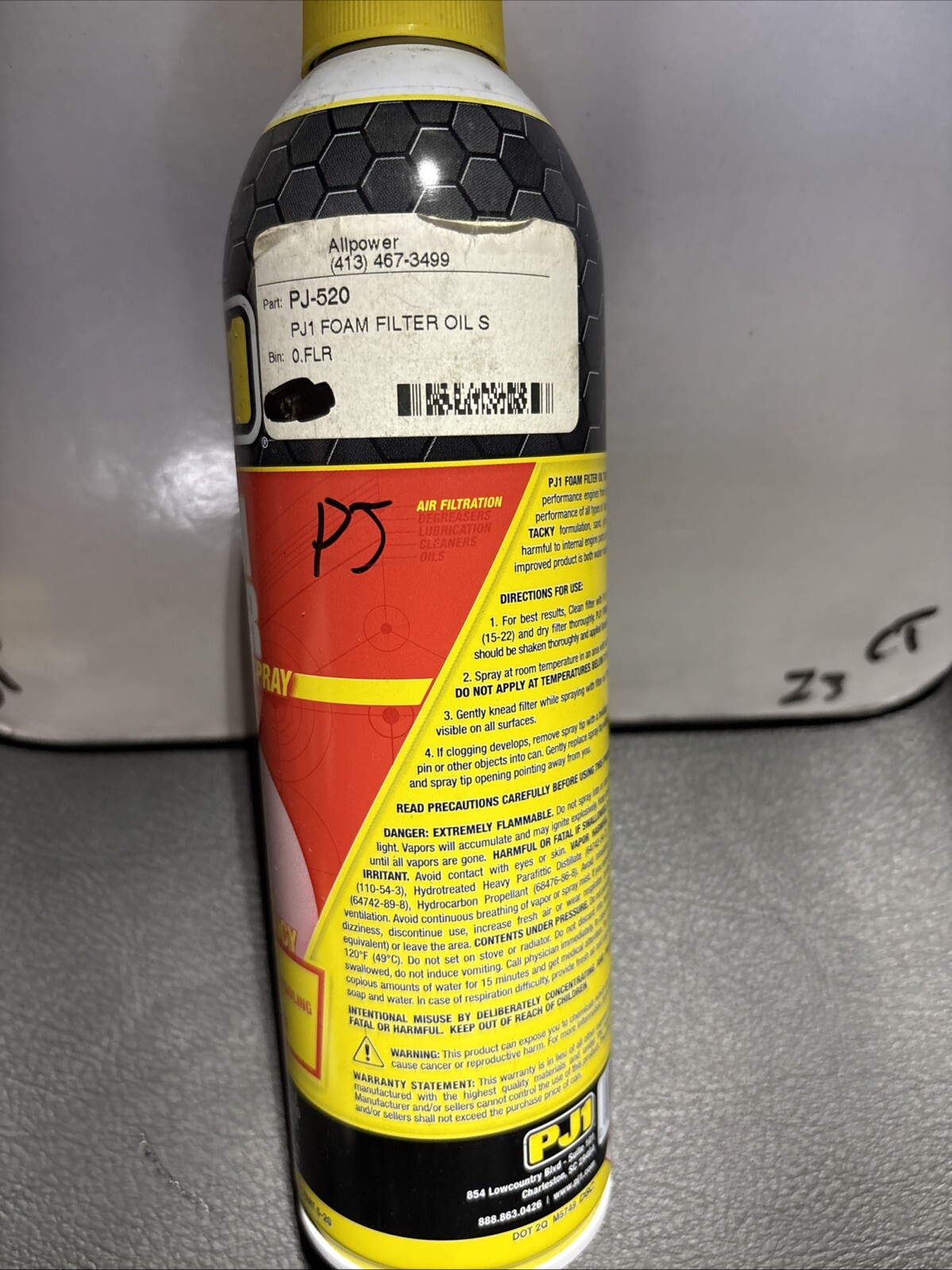PJ1 Foam Air Filter Oil Treatment Aerosol Spray 13oz PJ520