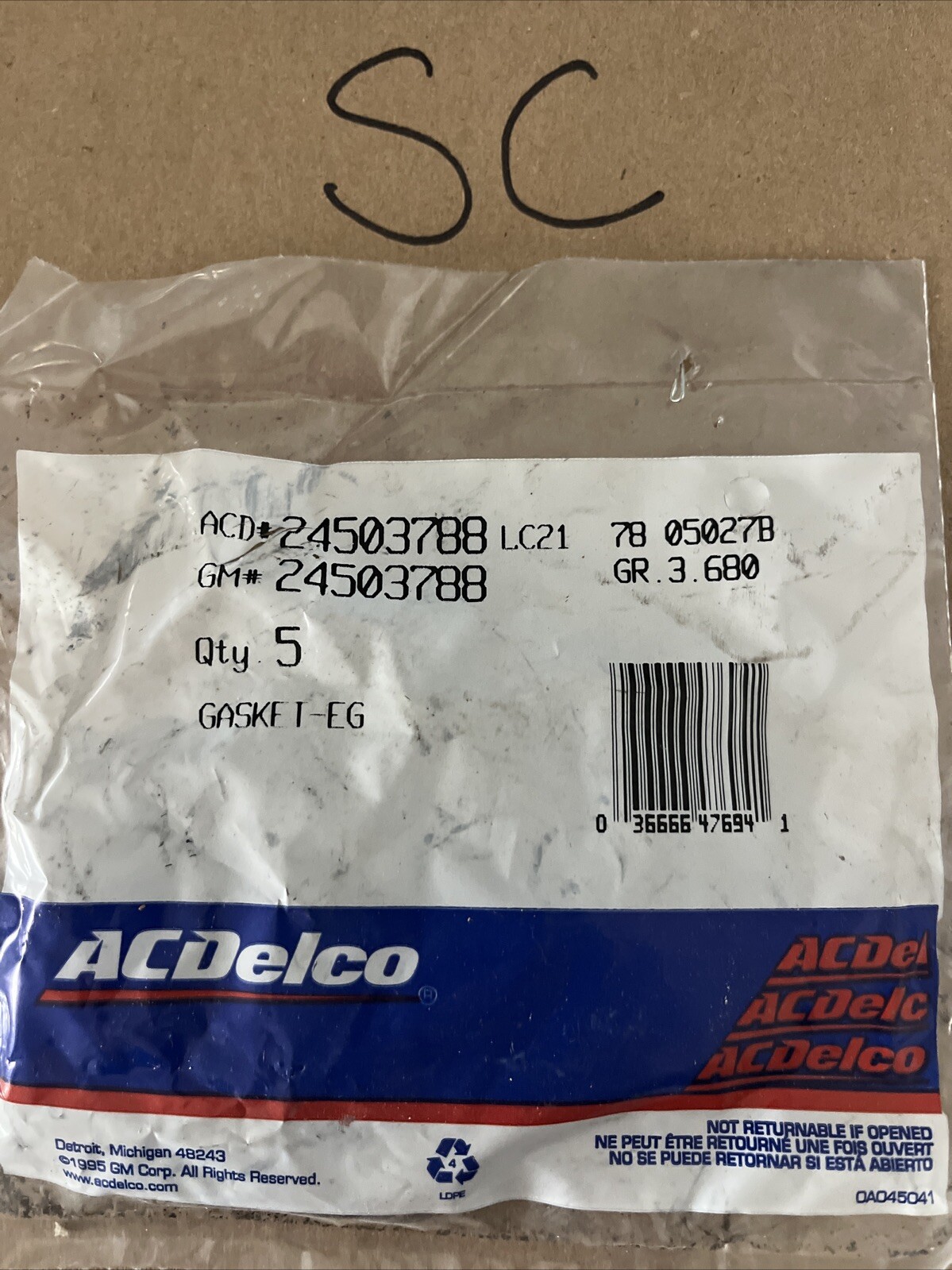 QTY 5 NEW ACDELCO/GM 24503788 GASKET, EGR VALVE 1993-1995