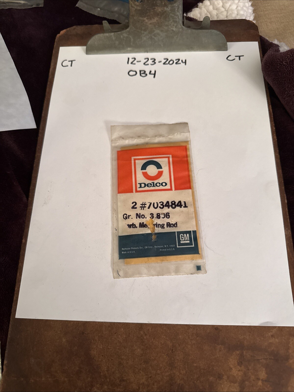 The product is a rare NOS (New Old Stock) OEM Delco metering rod with the manufacturer part number 07034841. This metering rod is specifically labeled as Gr. No 3.806, indicating a specific size or calibration for use in a carburetor. With the Delco brand and precise part number, this metering rod is likely a genuine and high-quality replacement part for air and fuel delivery systems in cars and trucks. It is designed to ensure proper fuel mixture and performance in the engine, making it a crucial component for optimal vehicle operation.
