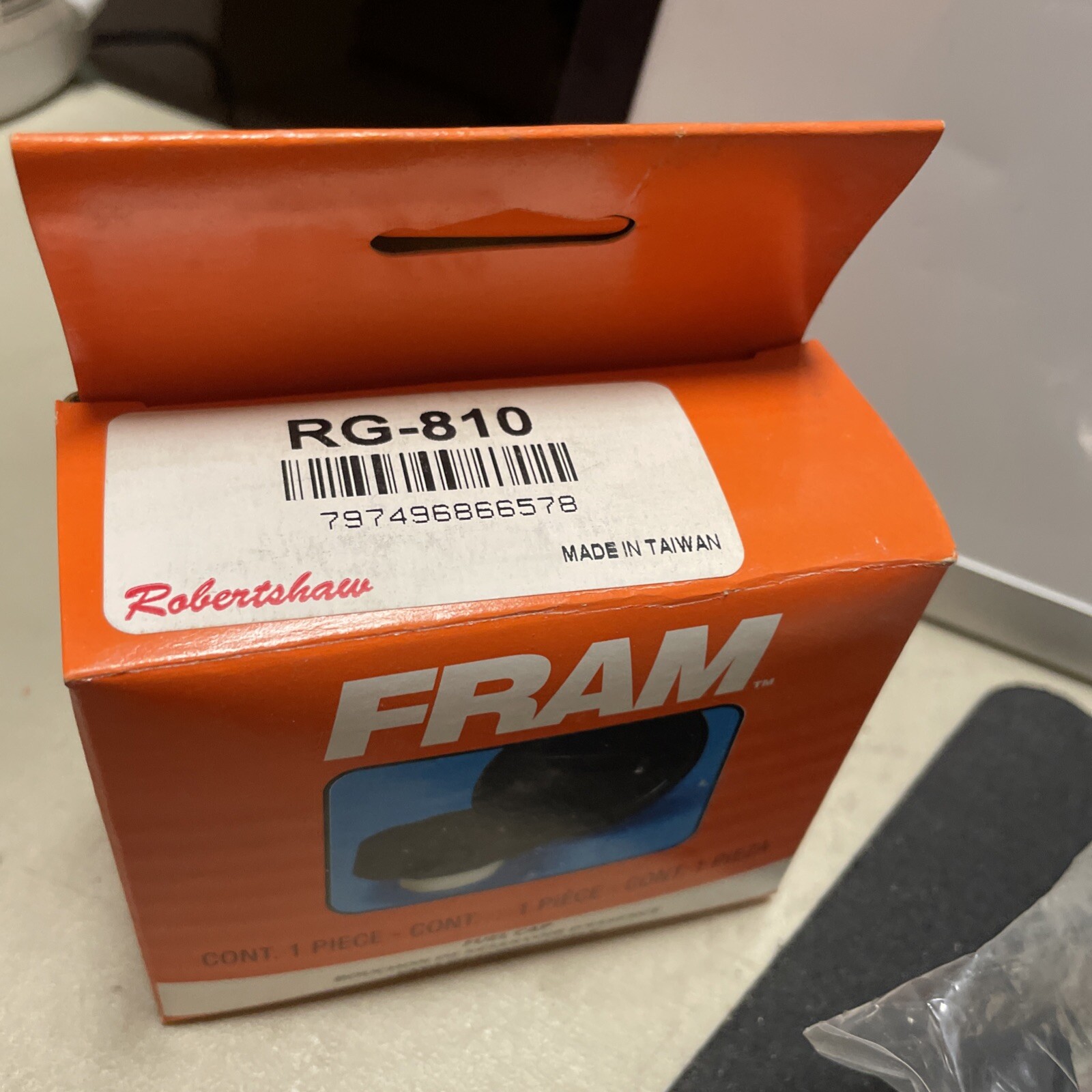 The Robertshaw Automotive-FRAM Fuel Cap RG 810 is a new and unused fuel cap designed for cars and trucks. Manufactured by Robertshaw in Taiwan, this silver fuel cap features a no-drill installation process, ensuring easy and straightforward setup without the need for modifications. The cap is compatible with various vehicles and comes in its original packaging, ready to be installed. The cap is interchangeable with part number 10810 and is a reliable choice for maintaining fuel tank functionality.