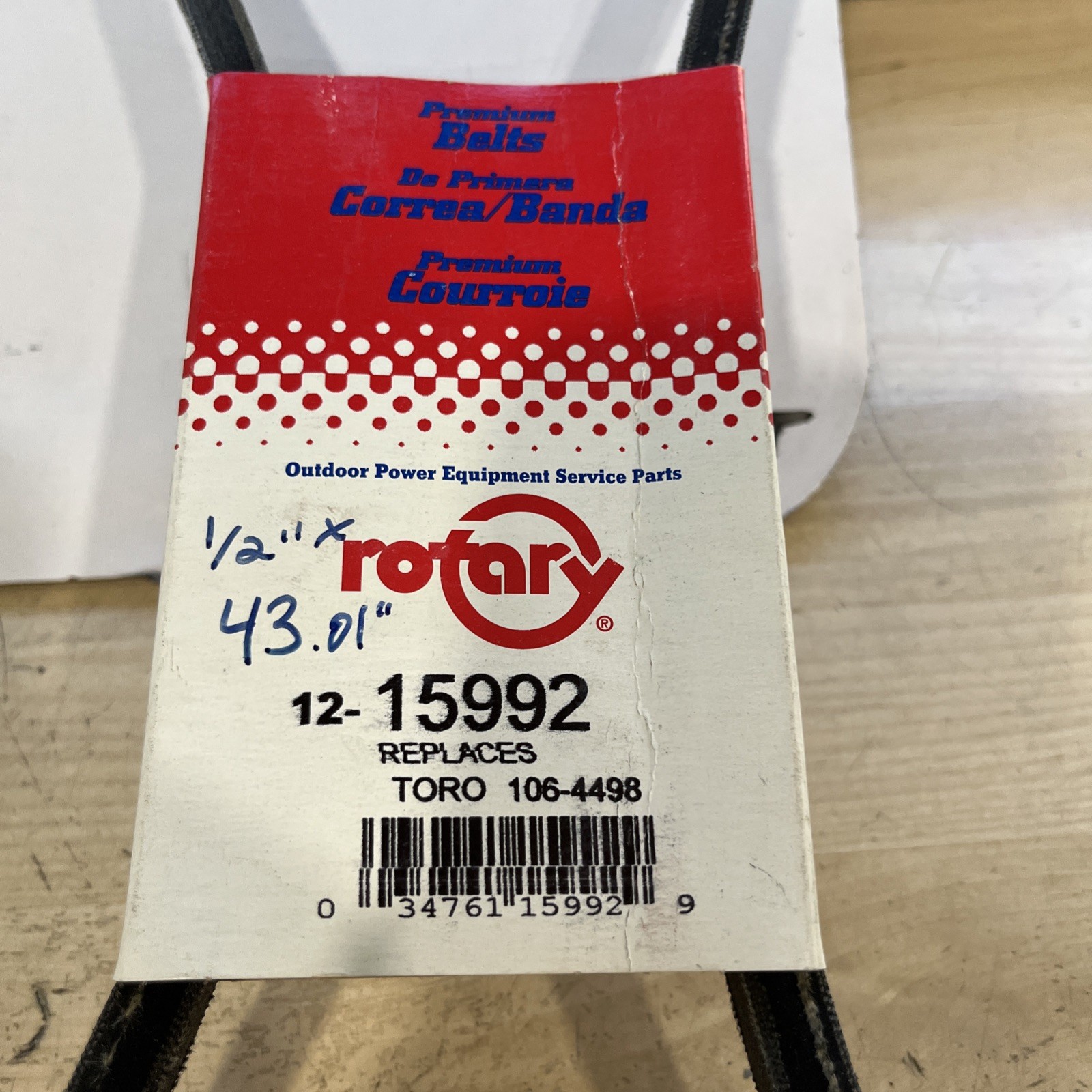 Upgrade your lawn equipment with the Rotary 12-15992 Premium Belt, a top-quality replacement part designed to match the performance of your TORO 106-4498 model. Crafted for durability and optimal fit, this belt ensures your mower runs smoothly, offering you a reliable and efficient gardening experience.