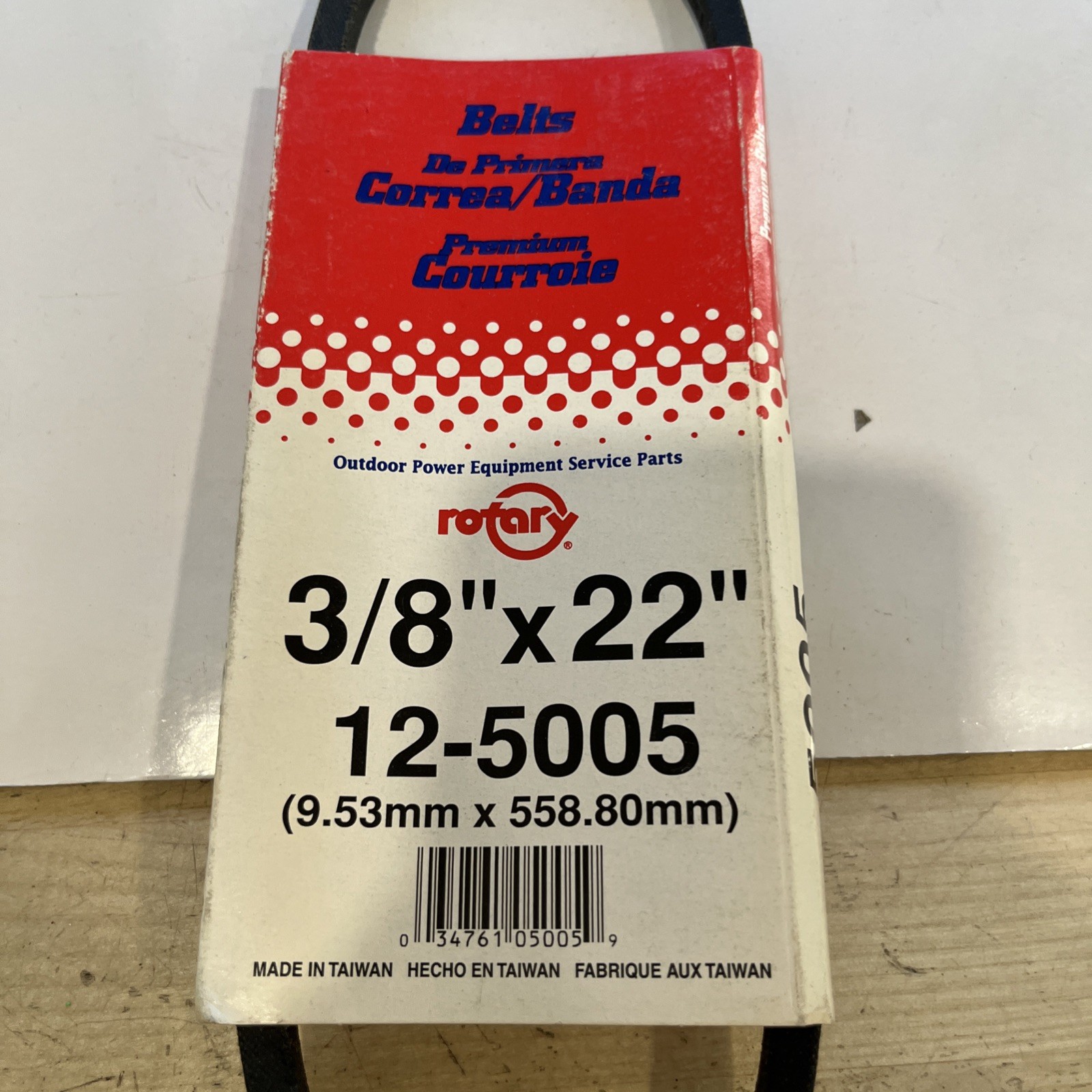 This replacement belt is made by Rotary Corp and is designed to fit a 3/8" x 22" accessory belt. It has a manufacturer part number of 5005 or 12-5005. This belt is compatible with a variety of car and truck models and is meant to be used in the accessory belt system.