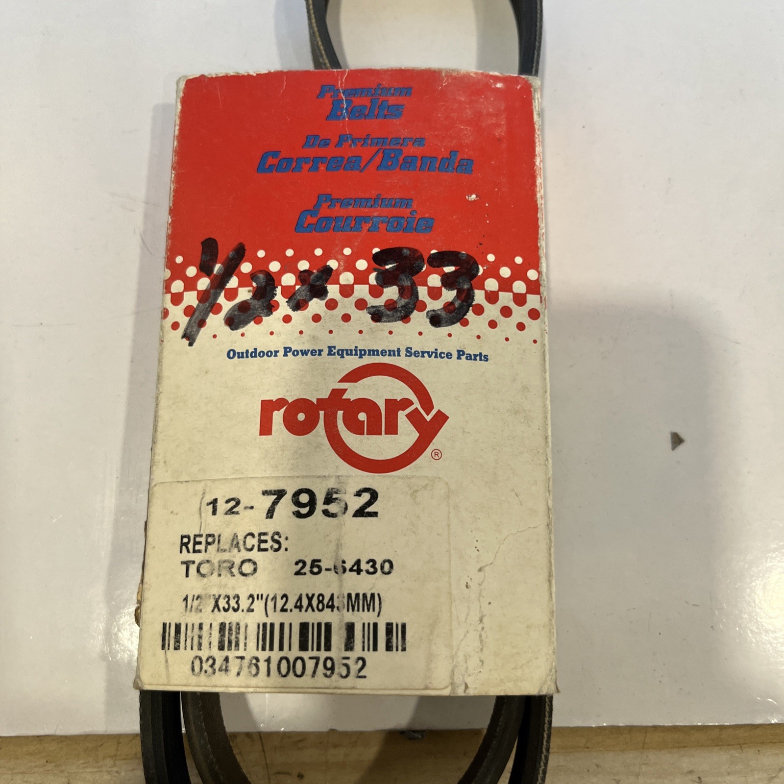 Ensure your Toro lawn mower is running smoothly with this Rotary replacement belt. Designed to fit model 25-6430, this 1/2” x 33.2” belt is made for durability and optimal performance. Keep your lawn looking its best with this reliable replacement part.