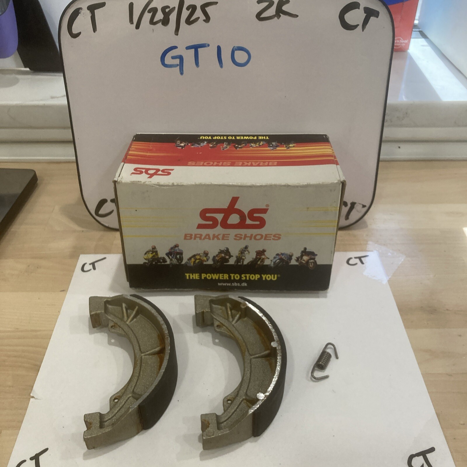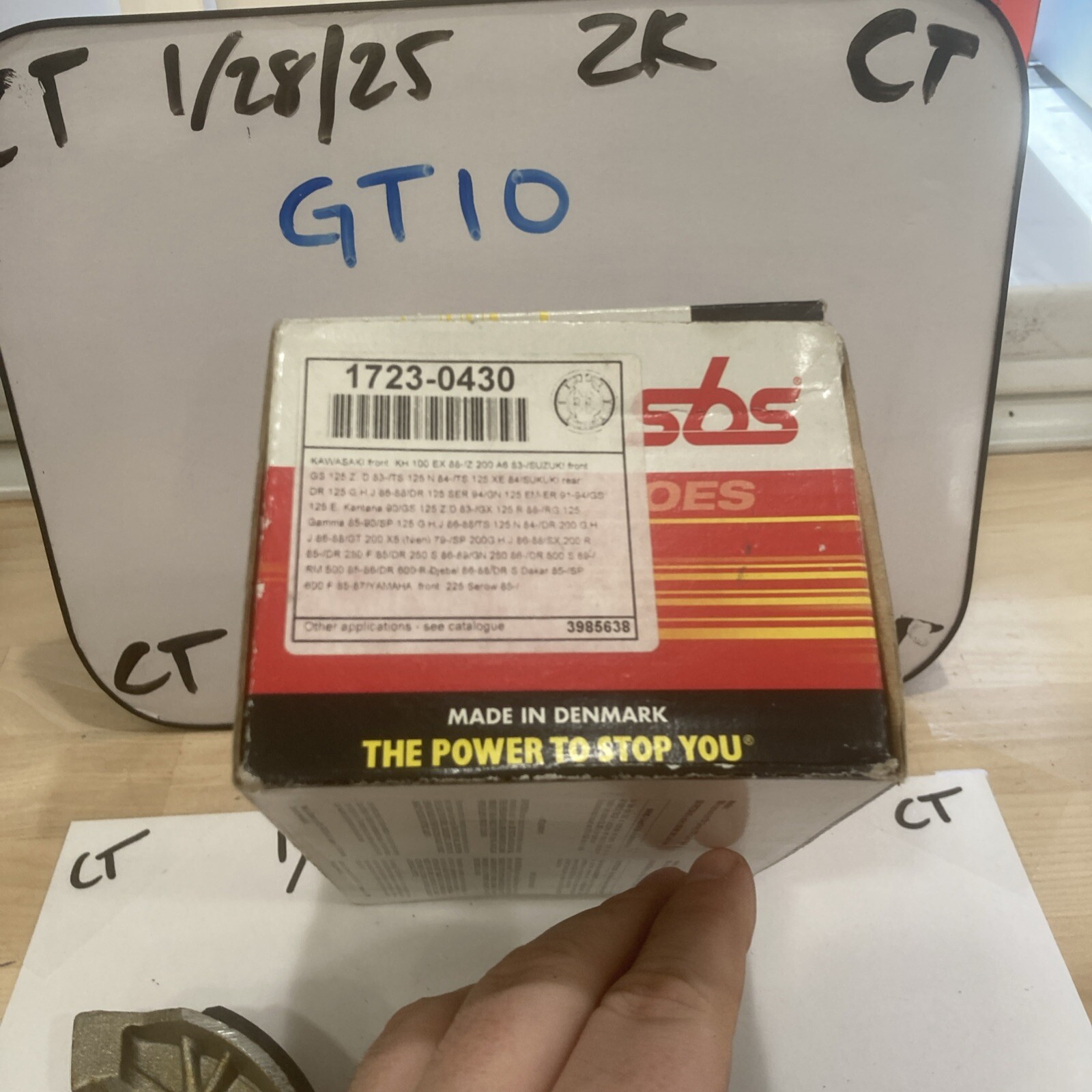 The product is a set of SBS Brake Shoes, specifically designed as part number 1723-0430. The brand SBS is known for producing high-quality motorcycle brake components. However, it is important to note that this particular set is missing one piece, which could affect its functionality. Brake shoes are essential components of a motorcycle's braking system, providing the necessary friction to slow down or stop the vehicle effectively. Riders should ensure that all pieces are intact and in good condition for optimal safety and performance on the road.
