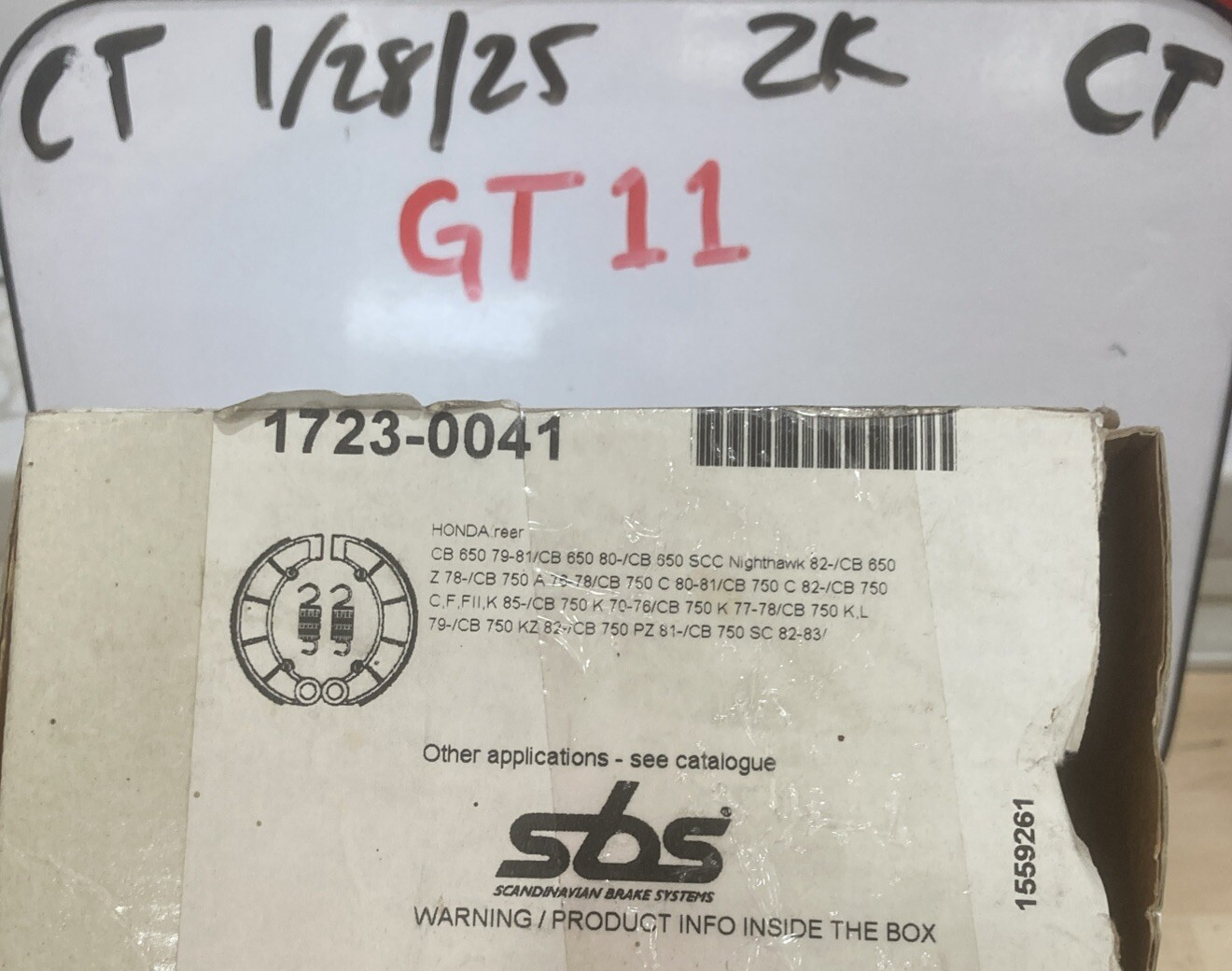 The product is a set of SBS rear brake shoes designed for motorcycles, specifically compatible with Honda CB650 and CB750 models. The manufacturer part number is 17230041. These brake shoes are essential components for the braking system of the mentioned motorcycles, providing safe and reliable stopping power. With the brand SBS known for quality motorcycle brake components, this product ensures proper fit and function for the rear brake system of Honda CB650 and CB750 models.