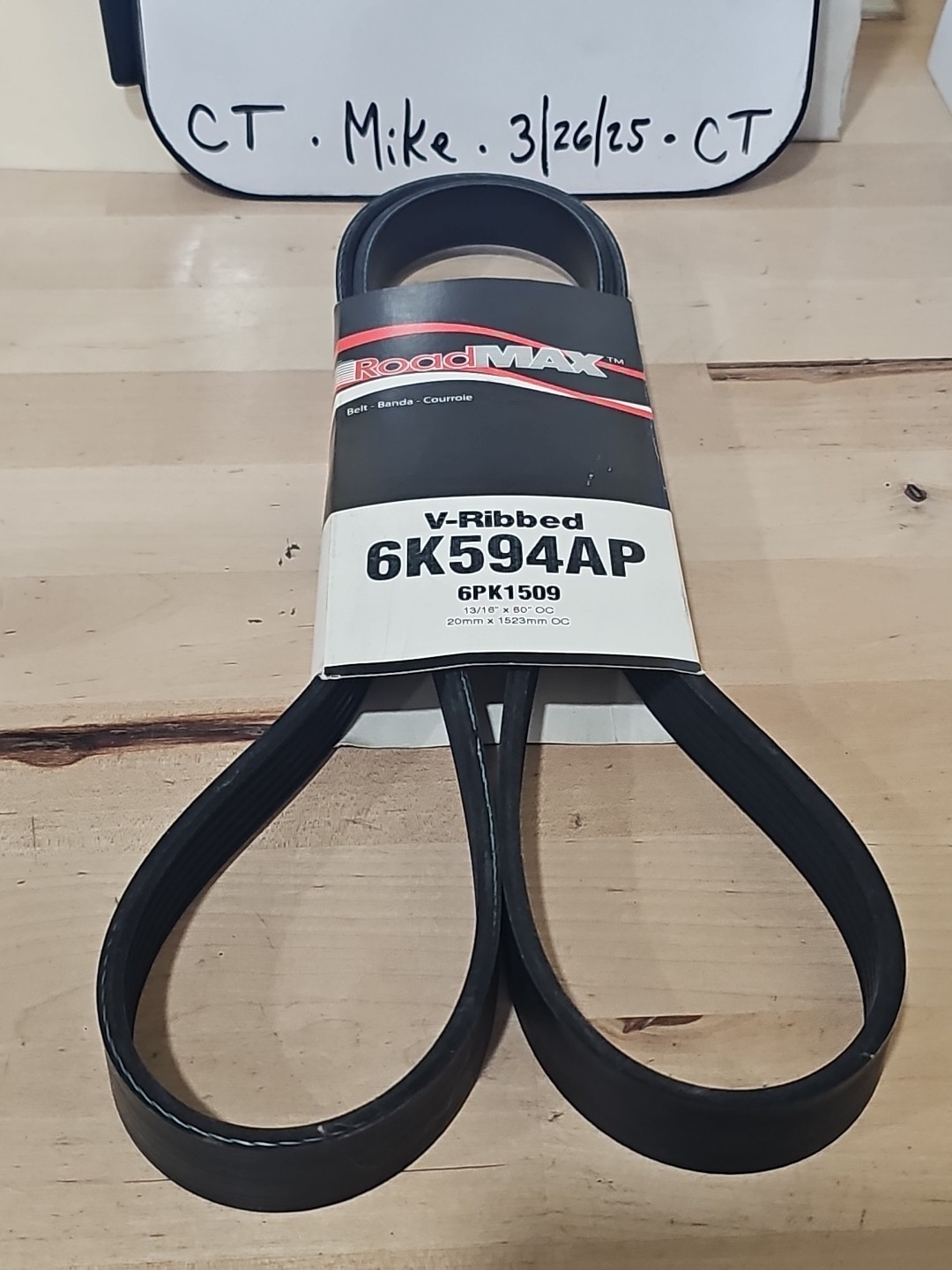 This is a high-quality serpentine belt made by Roadmax. It is designed to fit most automotive engines and is perfect for replacing old or worn-out belts. The belt is made in Mexico using top-quality materials to ensure long-lasting performance. This standard-sized belt has a 6K594AP manufacturer part number and comes in a quantity of one. It is easy to install and is guaranteed to provide reliable performance.