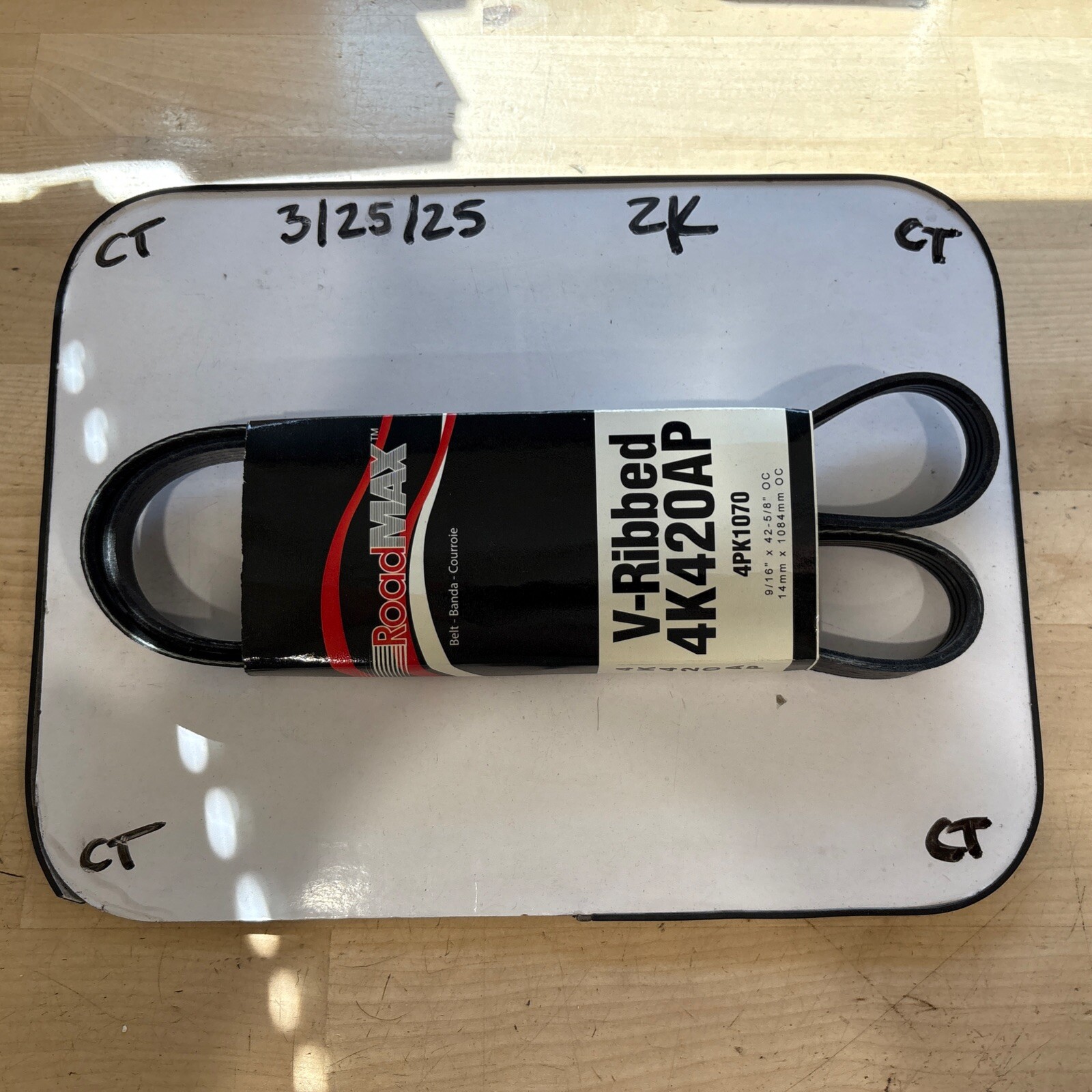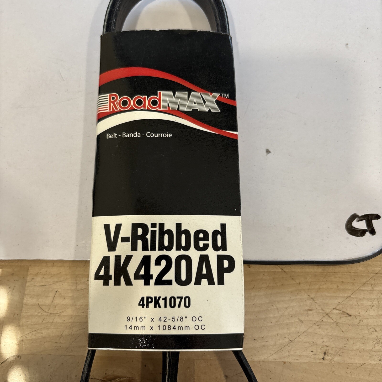 This serpentine belt is designed to fit most automotive engines and is made by the brand Roadmax. It is a standard size V-ribbed belt with a length of 4K420AP. This belt is made for use in car and truck accessories and is sold as a single unit. The SKU for this product is GRM:4K420AP.