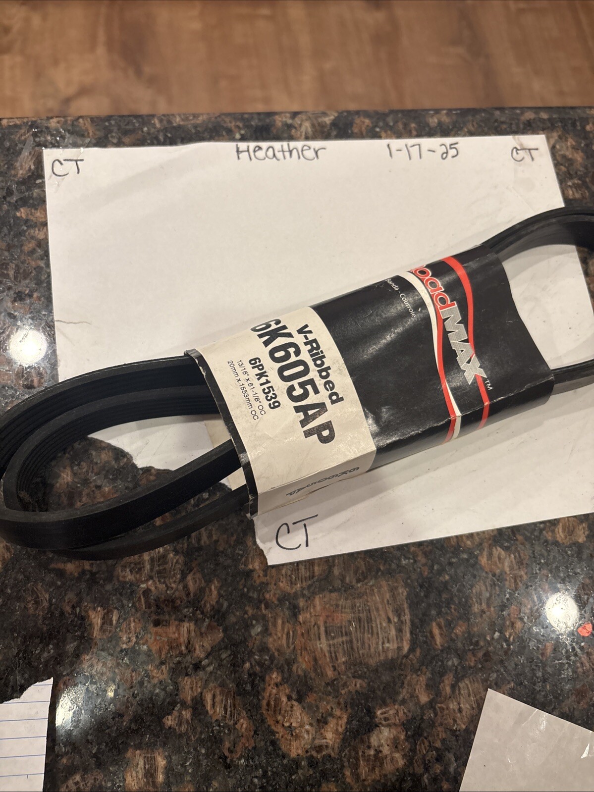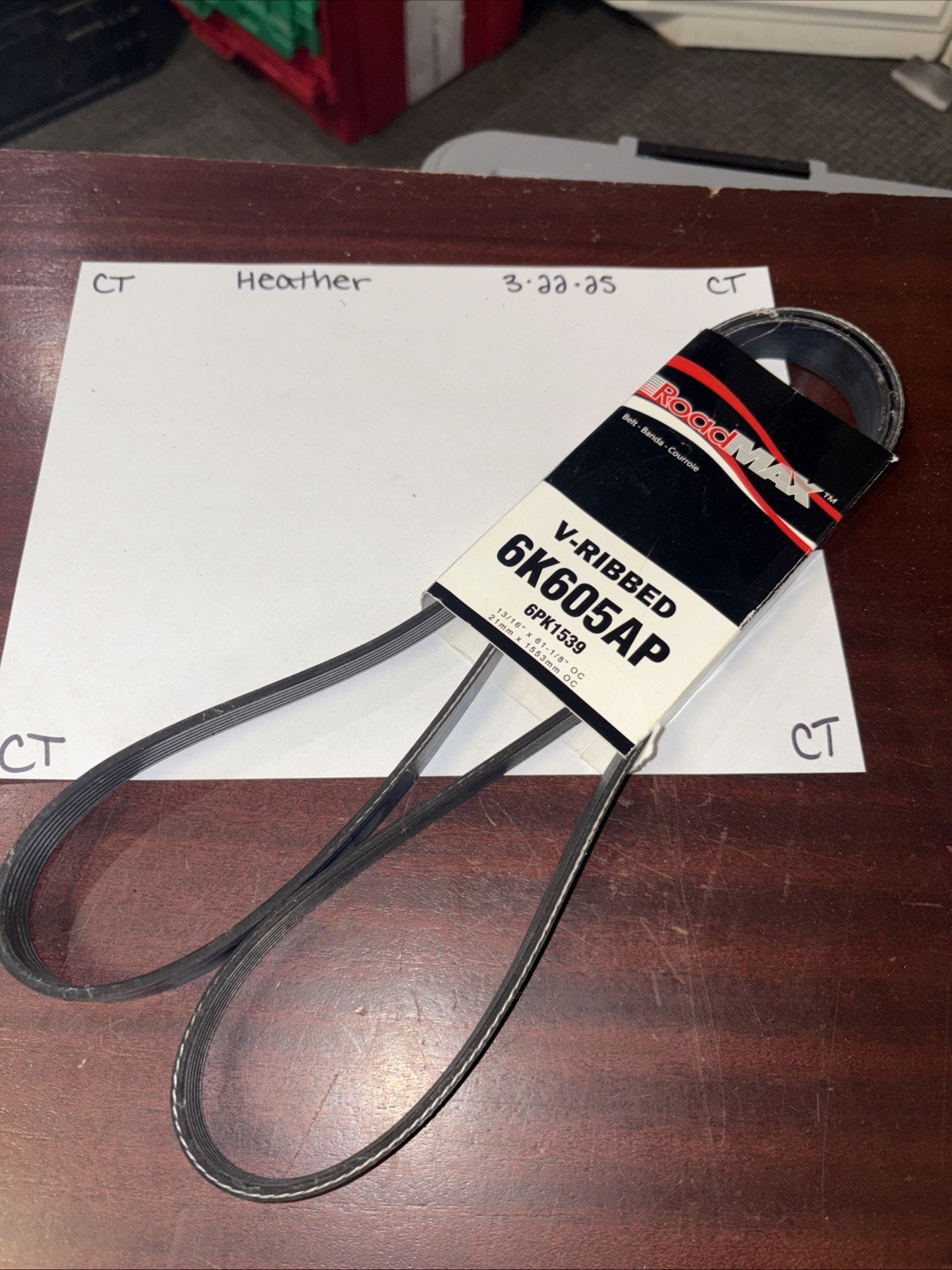 The product is a Serpentine Belt manufactured by Roadmax, with a Manufacturer Part Number of 6K605AP and SKU of RMR:6K605AP. This V-Ribbed Belt is designed for automotive use, specifically as a standard serpentine belt for vehicles. It is a crucial component for powering various engine accessories in a car or truck, ensuring proper functioning of the vehicle's systems. The Roadmax brand is known for producing quality automotive belts, making this product a reliable choice for maintenance and repairs.