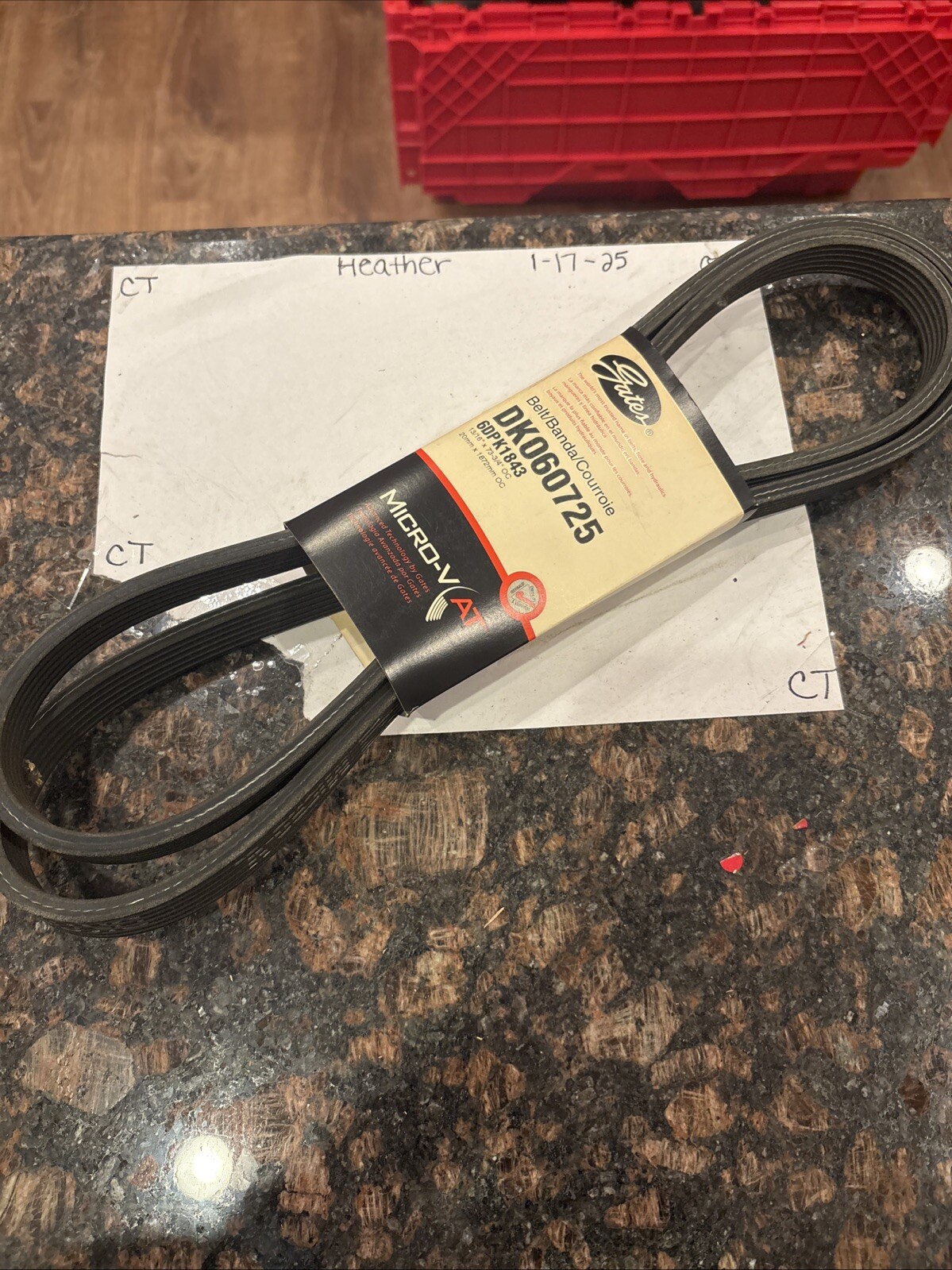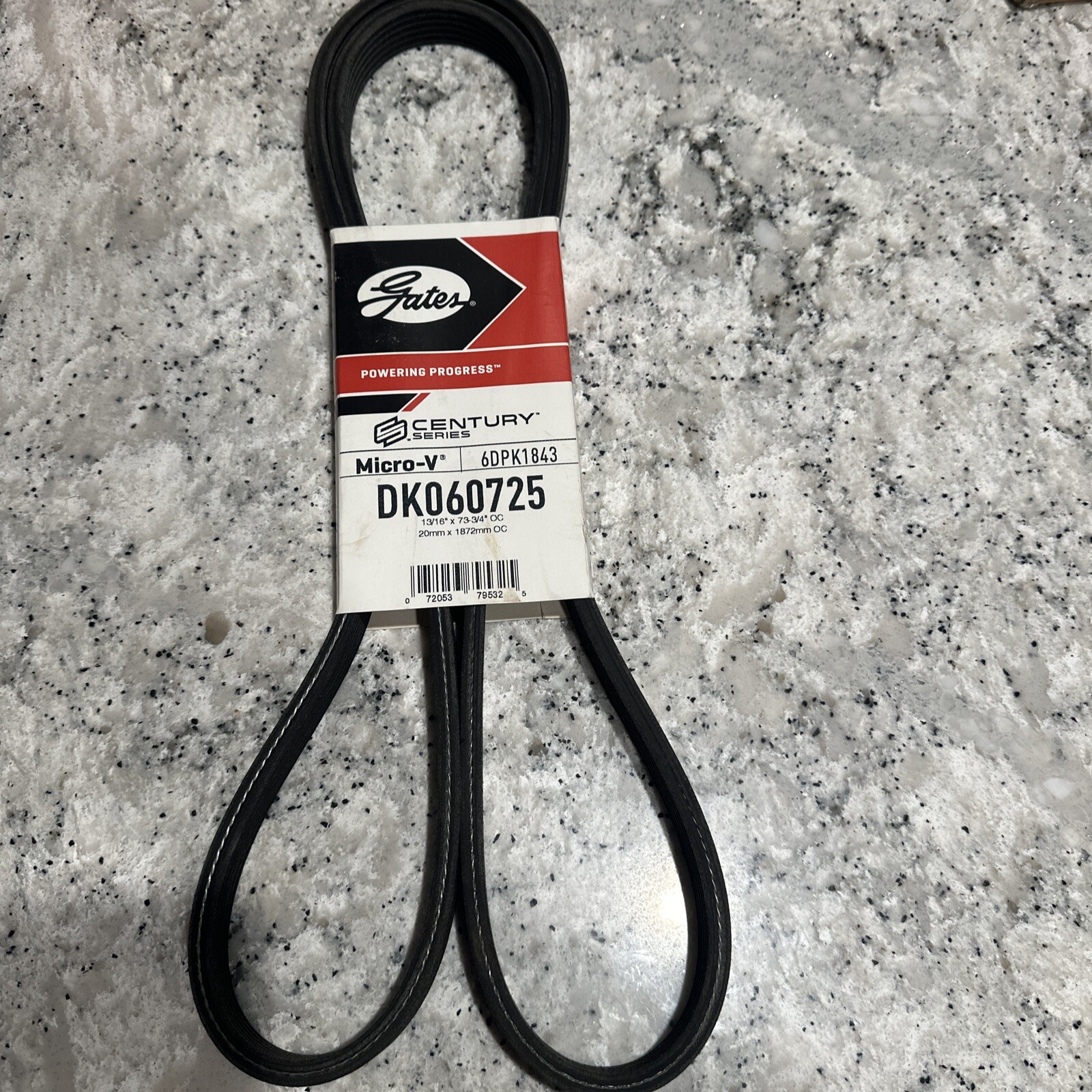 This is a Gates Serpentine Belt with the manufacturer part number DK060725. It is a premium OE dual sided Micro-V belt designed for automotive accessory belt systems.