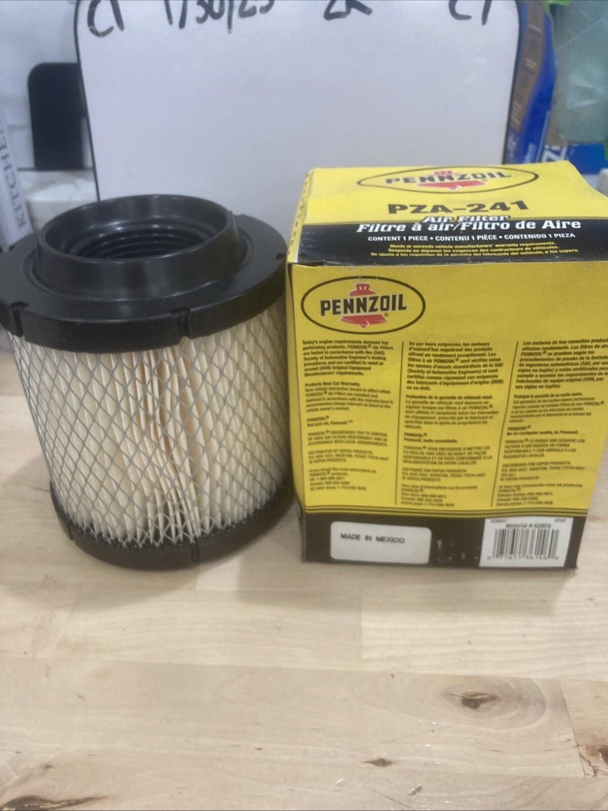 The product is a single Pennzoil PZA-241 air filter, designed to replace the Wix 42384 air filter. It is manufactured in Mexico and is suitable for use in a variety of vehicles. The interchange part numbers for this air filter are P607252 and 04891097AA. This Pennzoil air filter is a reliable option for maintaining the air quality in your vehicle's engine, ensuring optimal performance and efficiency.