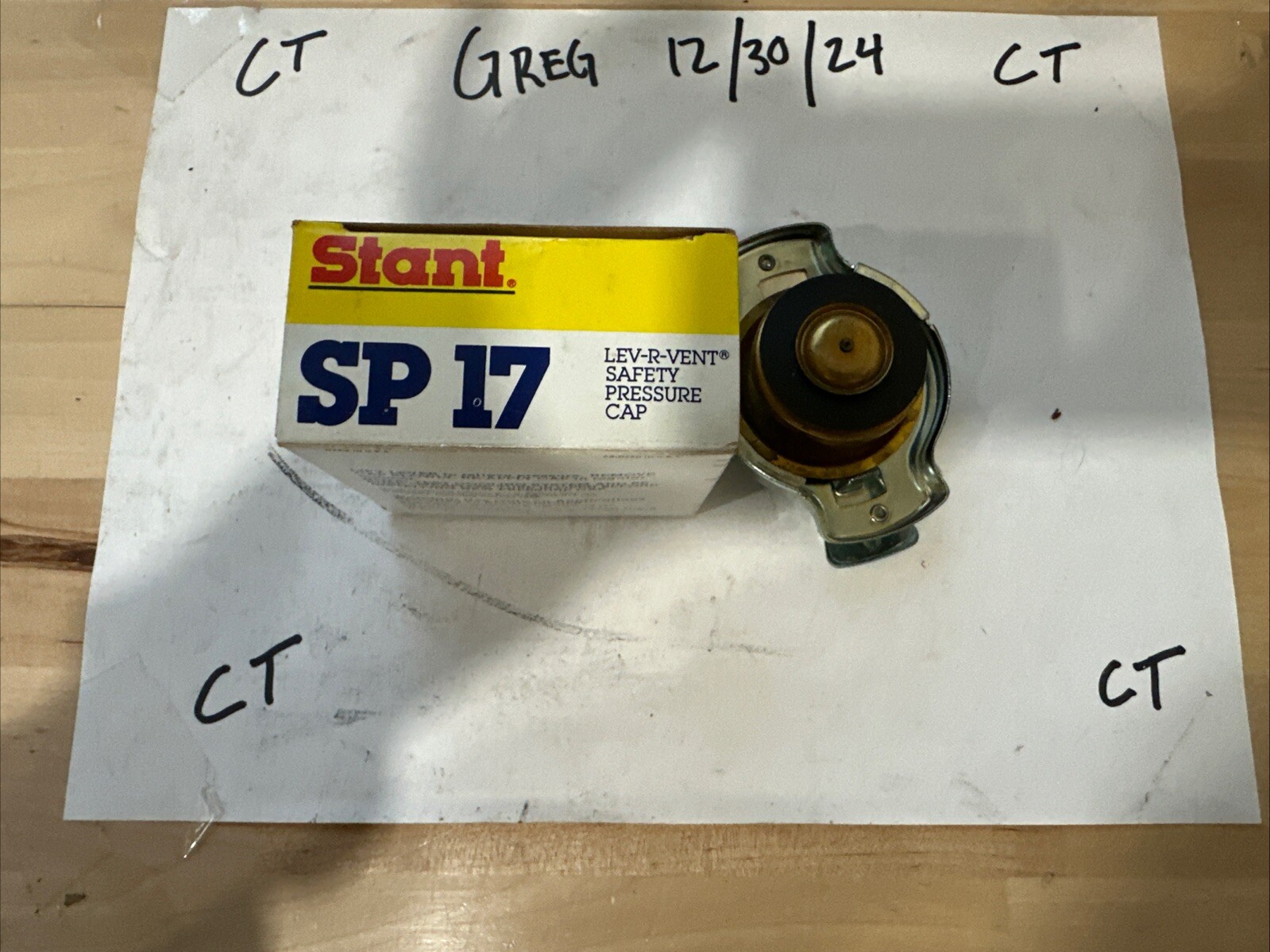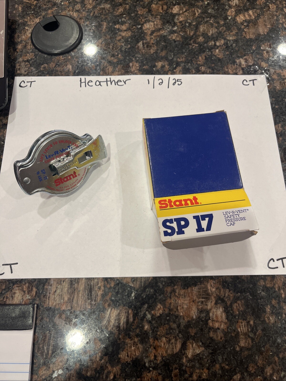 The product is a vintage radiator cap with LEV-R-VENT technology. It is a Stant SP17 model, designed for use in engine cooling systems. This radiator cap is a high-quality replacement part for car and truck engine cooling components, providing a reliable and efficient solution for maintaining proper pressure and temperature control in the cooling system.