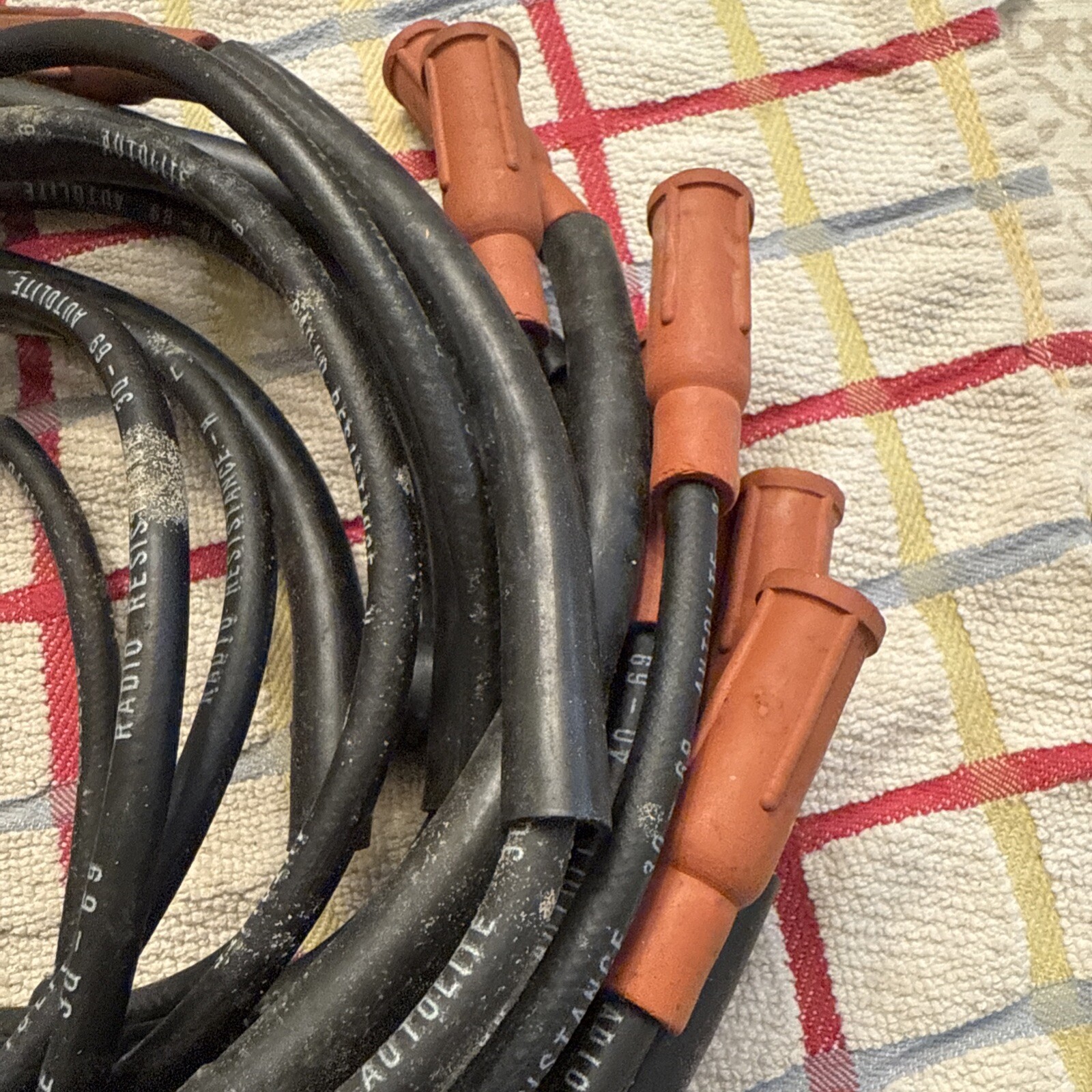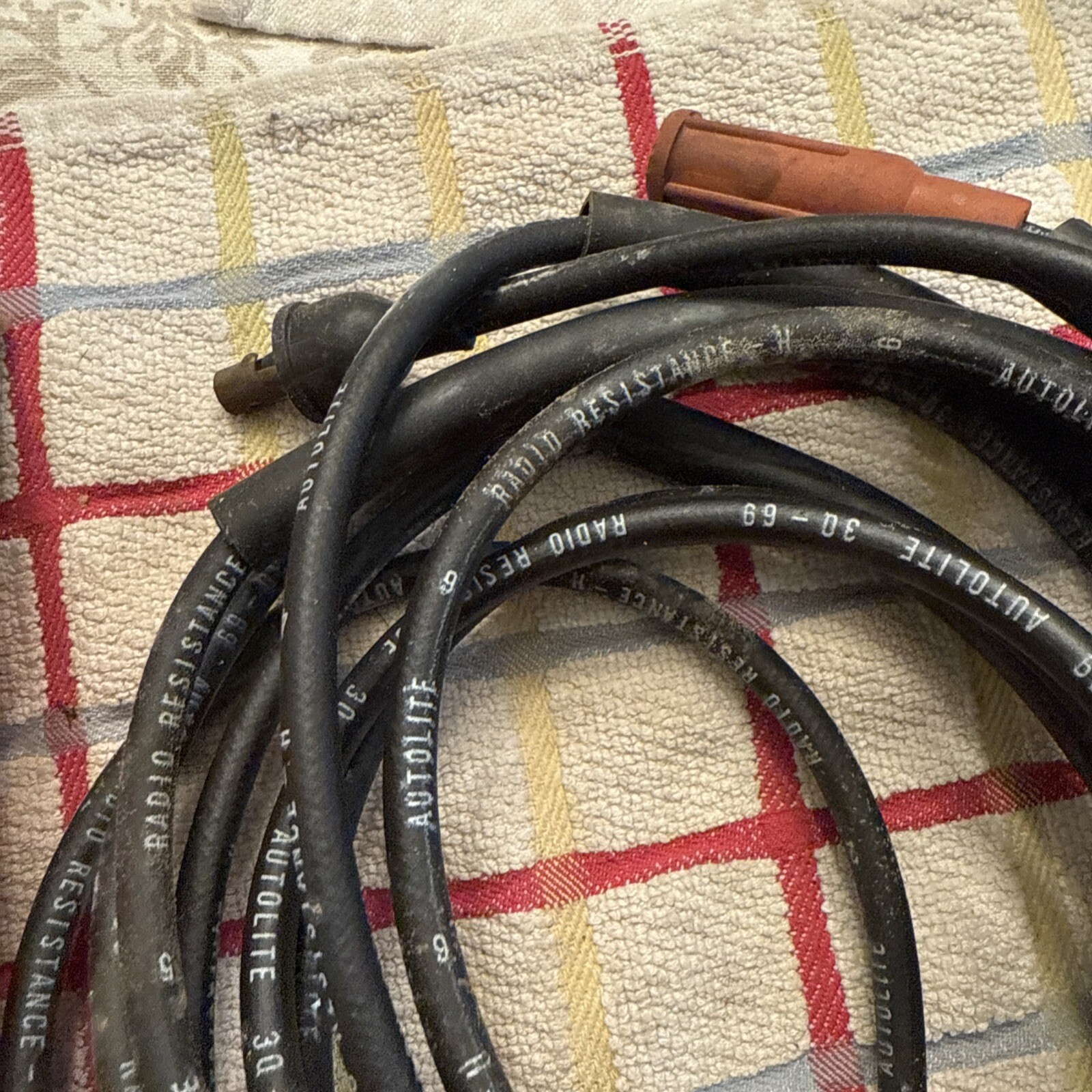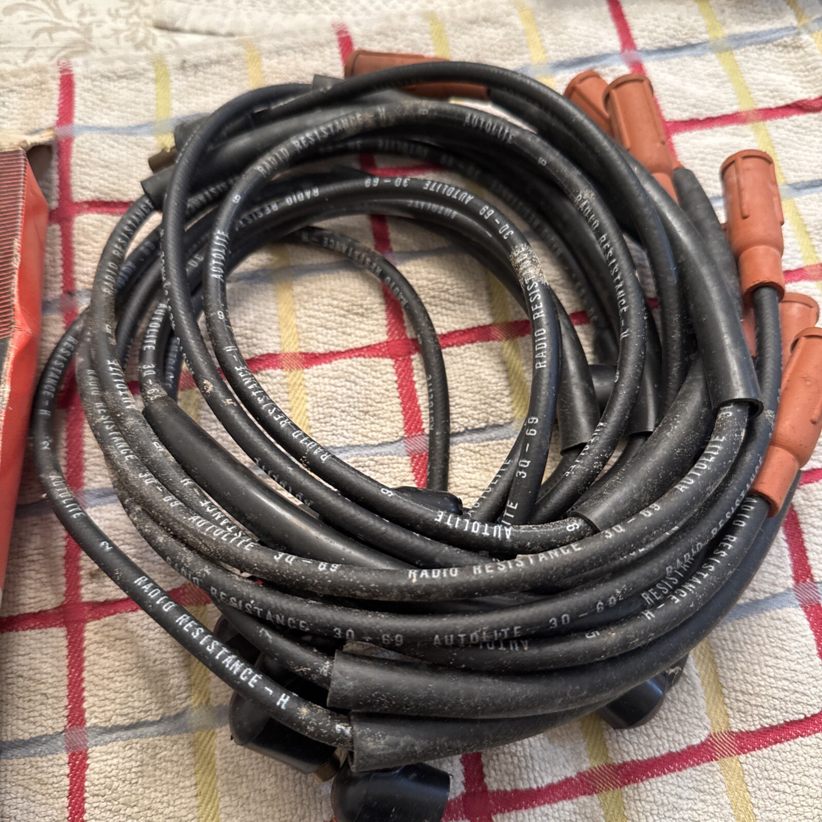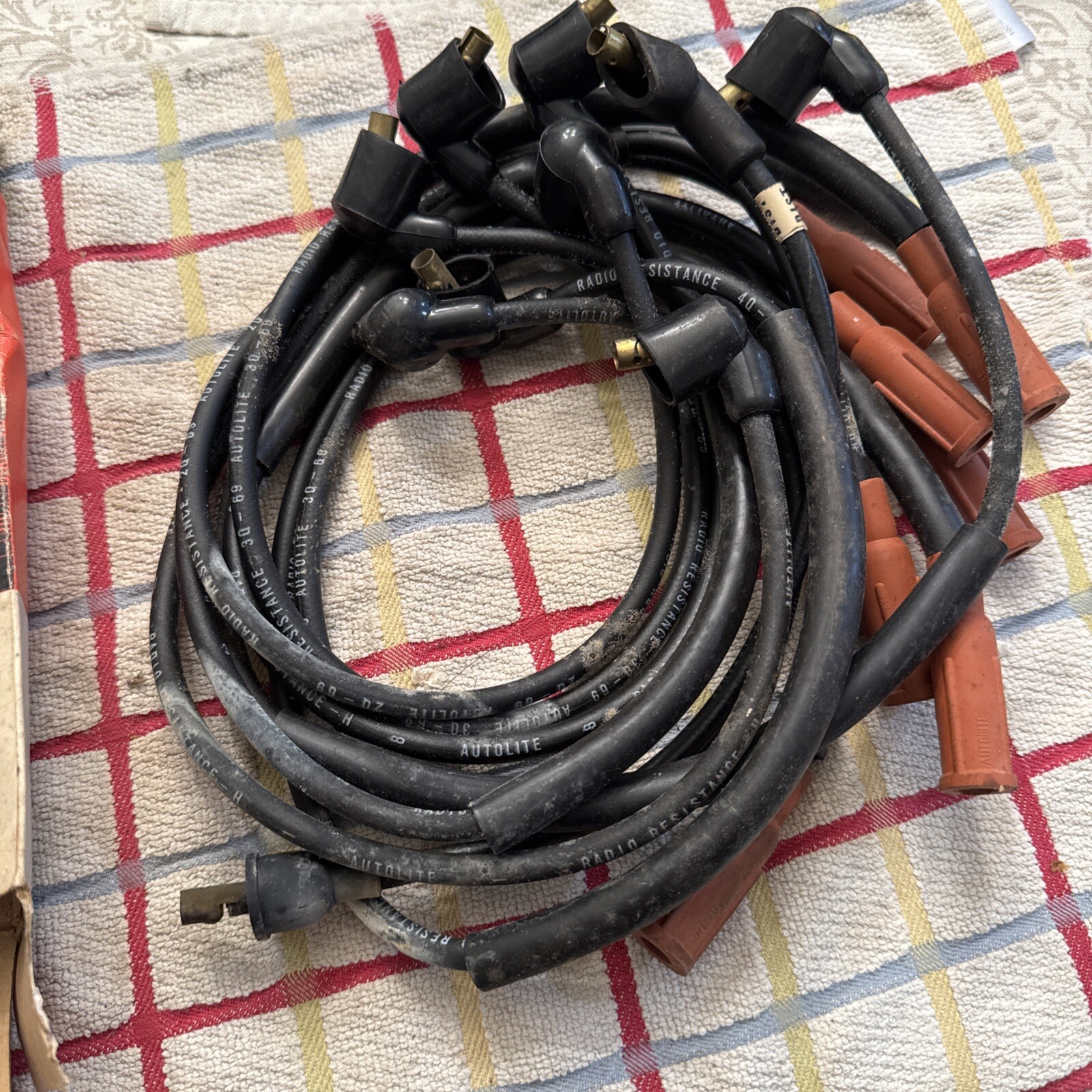 This is a set of spark plug wires from Autolite, suitable for use in 1968, 1969, and 1970 Fairlane and Mustang models. The wires are in excellent shape and have been well-maintained, ensuring their reliable performance. They are a great choice for anyone looking to upgrade their ignition system or replace their old wires.