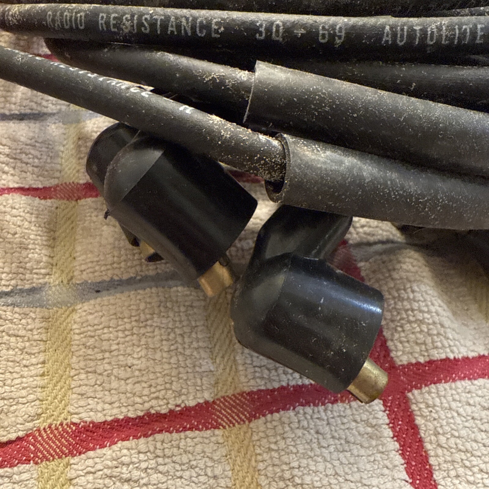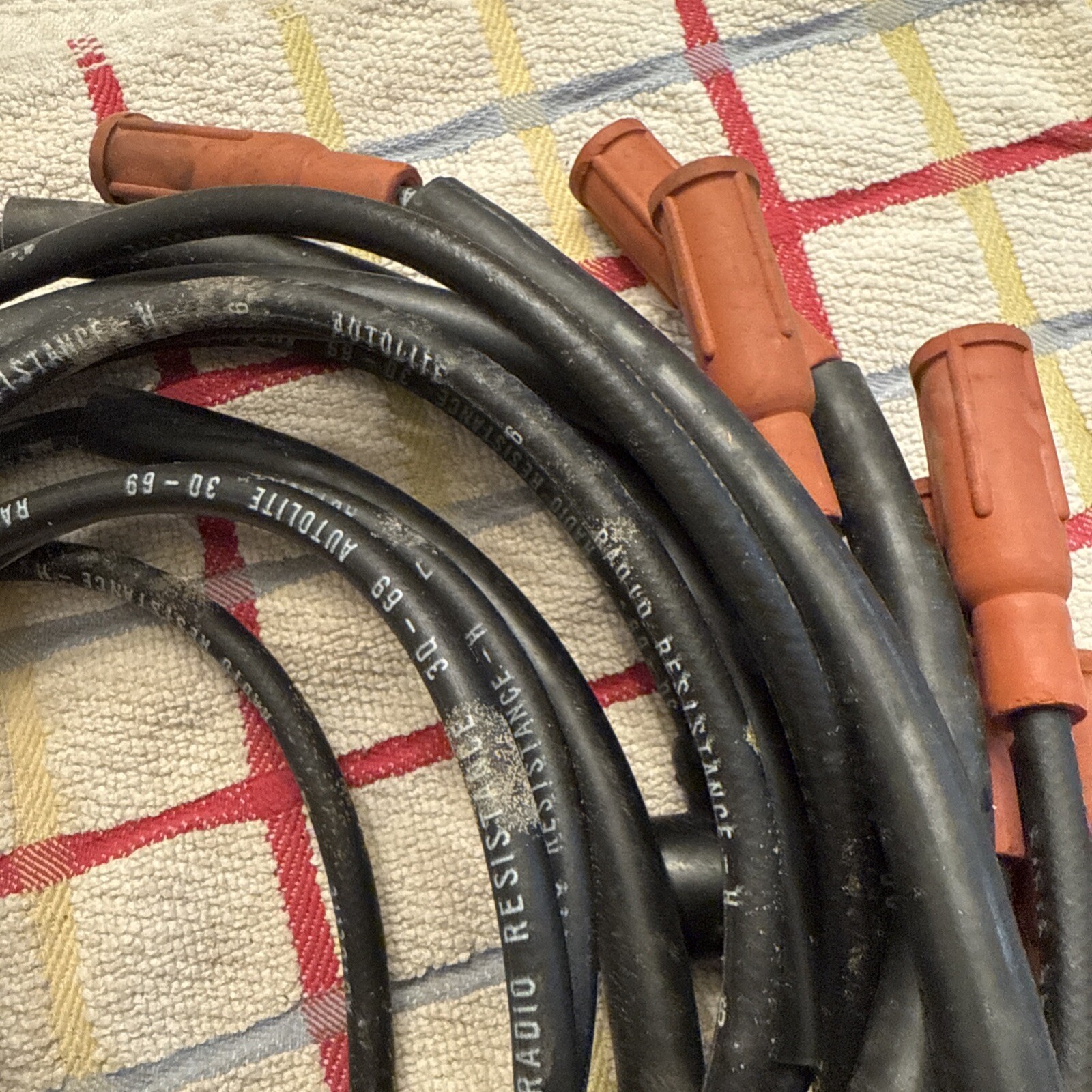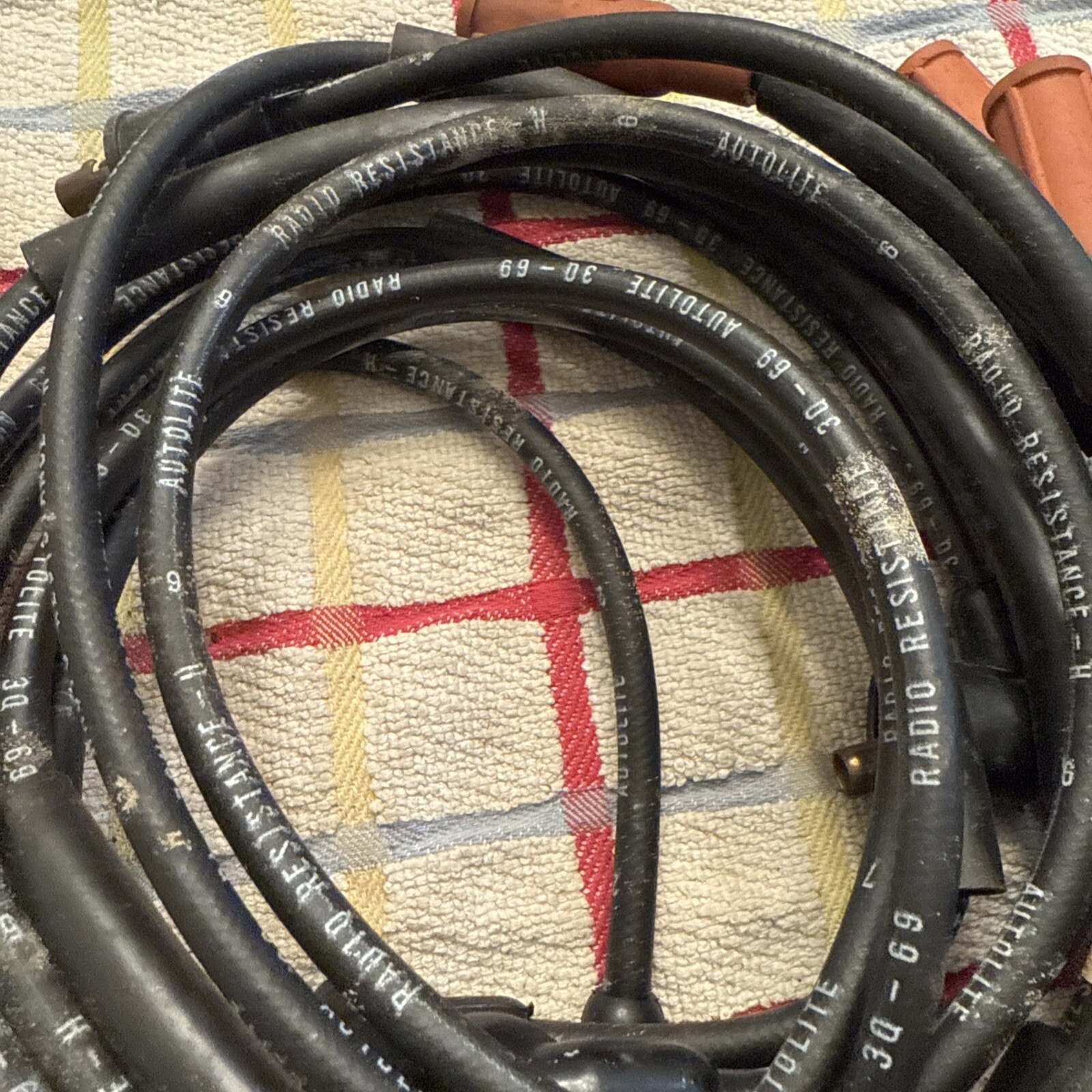 This is a set of spark plug wires from Autolite, suitable for use in 1968, 1969, and 1970 Fairlane and Mustang models. The wires are in excellent shape and have been well-maintained, ensuring their reliable performance. They are a great choice for anyone looking to upgrade their ignition system or replace their old wires.