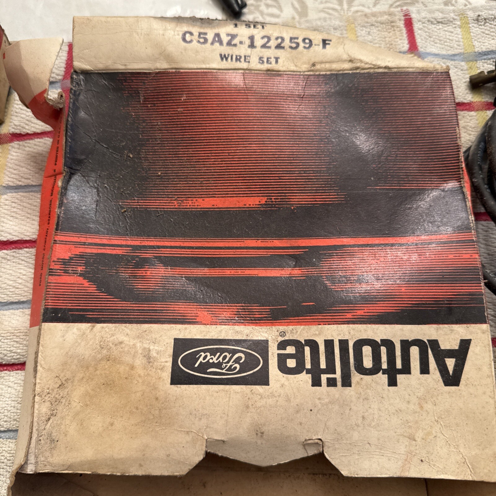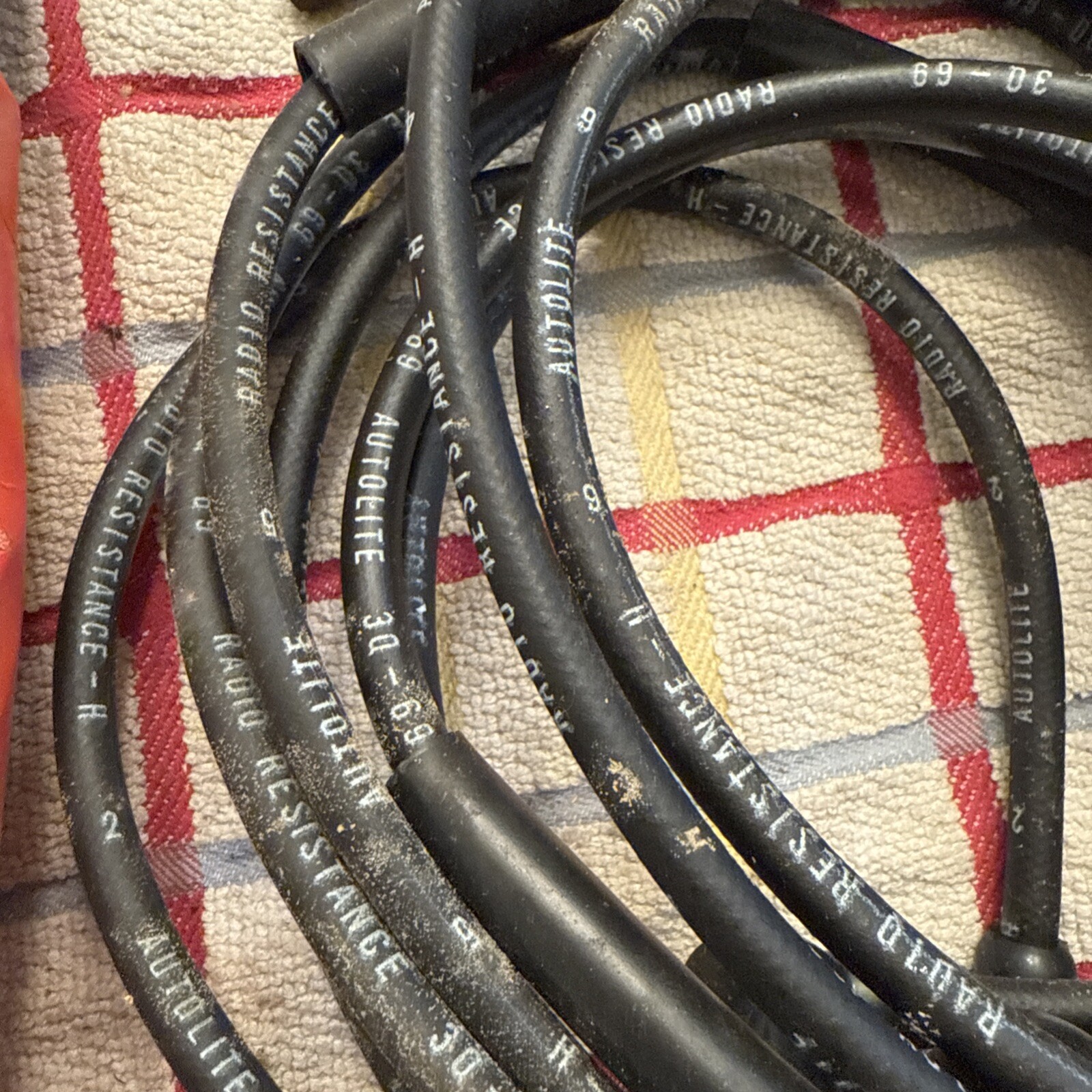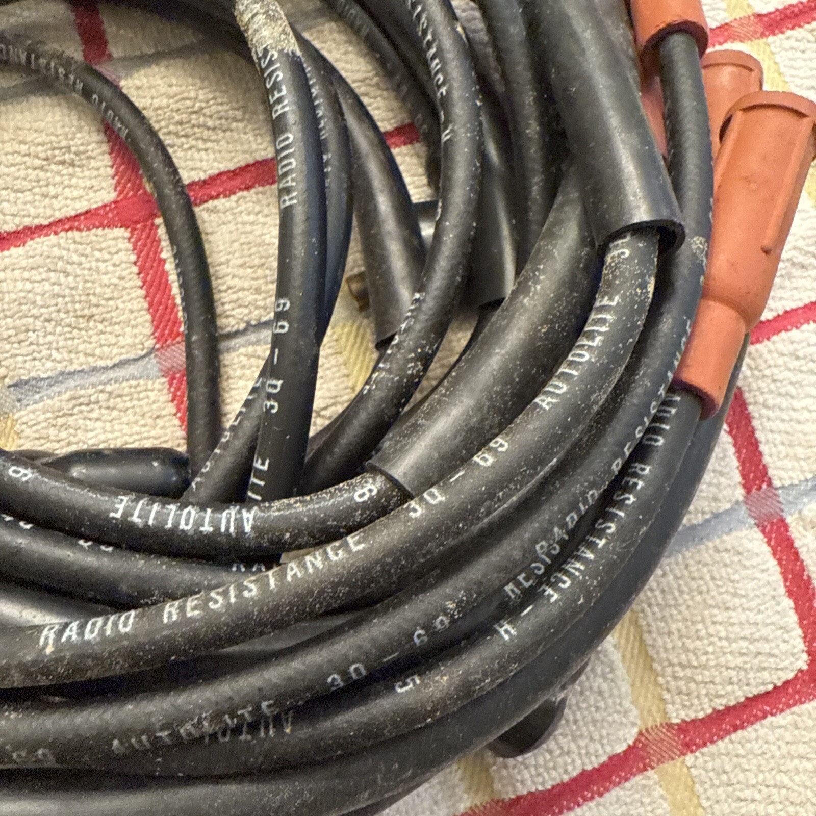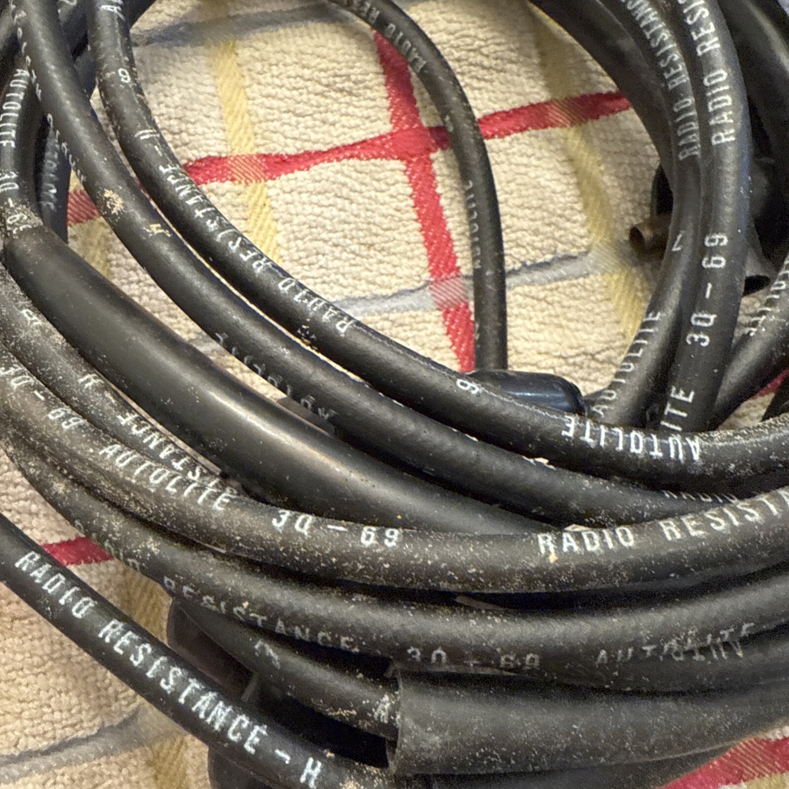 This is a set of spark plug wires from Autolite, suitable for use in 1968, 1969, and 1970 Fairlane and Mustang models. The wires are in excellent shape and have been well-maintained, ensuring their reliable performance. They are a great choice for anyone looking to upgrade their ignition system or replace their old wires.