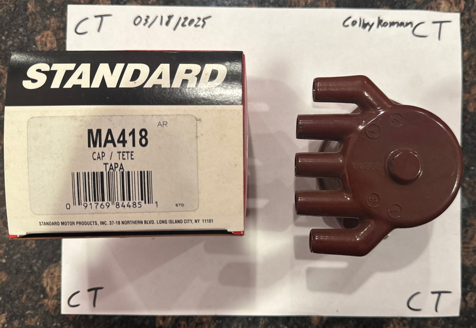 This Standard brand distributor cap, also known as a tete tapa, is designed to fit various car and truck models. The MA418 manufacturer part number ensures compatibility with specific ignition systems and components. This cap serves as a crucial component in the distribution of electrical sparks to the appropriate cylinders in the engine, ensuring proper ignition and performance.