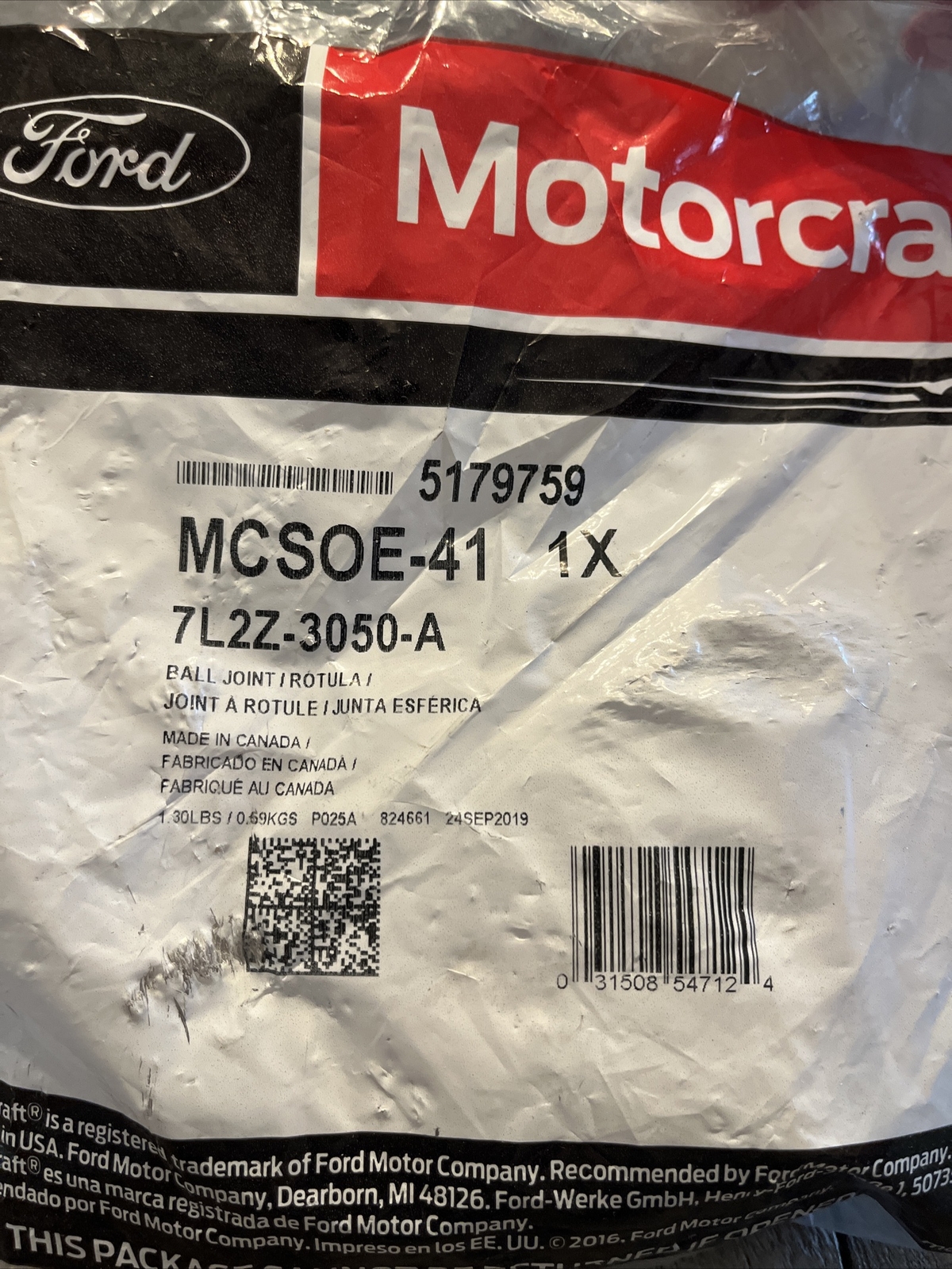 Suspension Ball Joint Front Lower MOTORCRAFT MCSOE-41, 7L2Z-3050-A