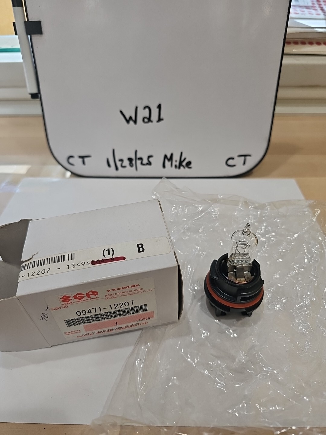 The product is a Suzuki 12V40/40W bulb with the manufacturer part number 09471-12207. It is designed for motorcycles and scooters and is used as a replacement part for lighting purposes. This specific bulb model is compatible with certain Suzuki models and provides a 40/40 wattage output for reliable illumination while riding.
