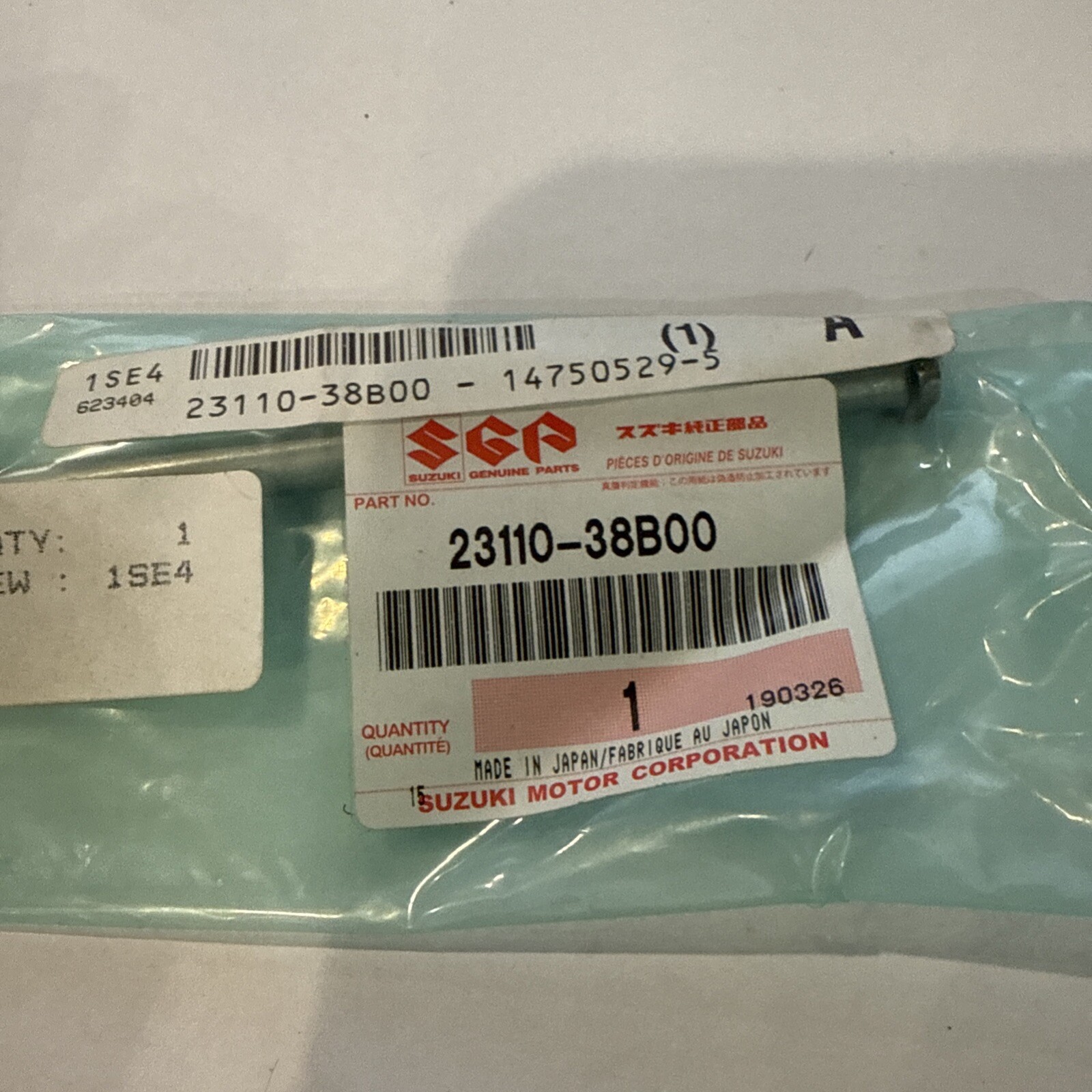 The product is a Suzuki NOS OEM clutch push rod with the manufacturer part number 23110-38B00. This item is designed for use in the transmission and drivetrain of a Suzuki motorcycle or scooter. The clutch push rod is a crucial component that helps in the smooth operation of the clutch system, ensuring proper engagement and disengagement of the clutch during gear changes. This genuine Suzuki part is essential for maintaining the functionality and performance of the clutch system in your Suzuki vehicle.