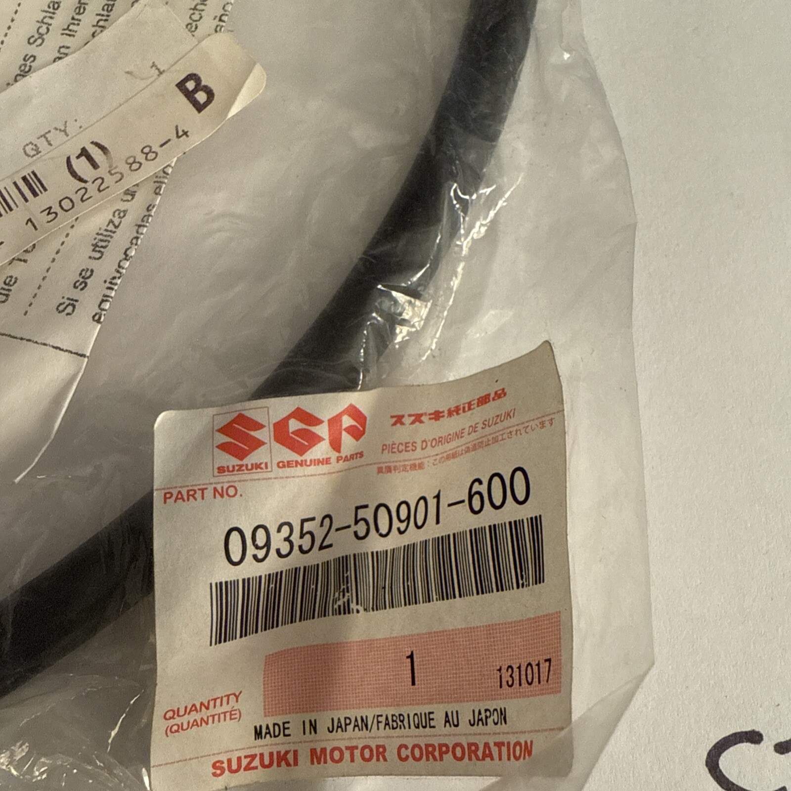 The product is a genuine OEM Suzuki part with the manufacturer part number 09352-50901-600. It is a hose specifically designed for the tank overflow in Suzuki vehicles. The listing emphasizes that you are purchasing the individual MPN mentioned in the title, and that this MPN can be used on multiple year, make, and model combinations. The product does not come with a warranty, and customers are advised to inquire about the combined shipping policy before purchasing.