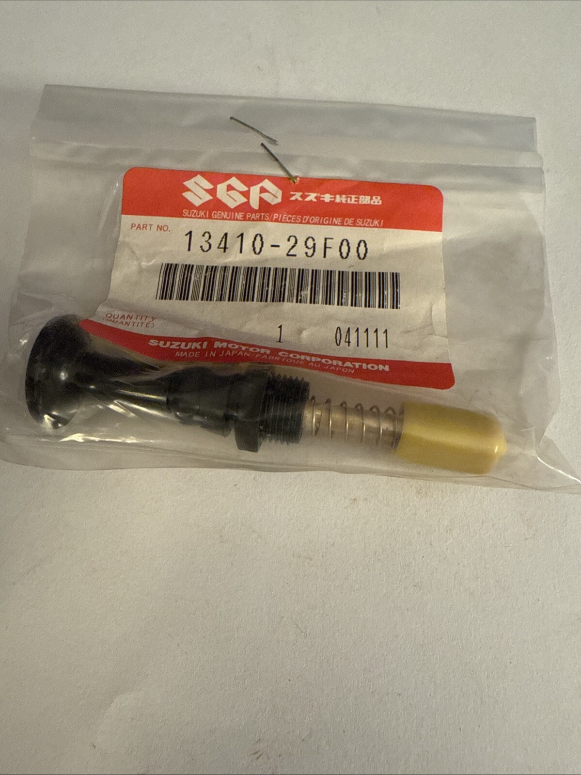 The Suzuki OEM Part 13410-29F00 VALVE, STARTER is a genuine OEM product manufactured by Suzuki. It does not come with any warranty. This individual MPN can be used on multiple YMM combinations, making it versatile for various applications. Please contact the seller for combined shipping instructions. This valve is specifically designed for starter systems in Suzuki vehicles, ensuring a precise fit and reliable performance.