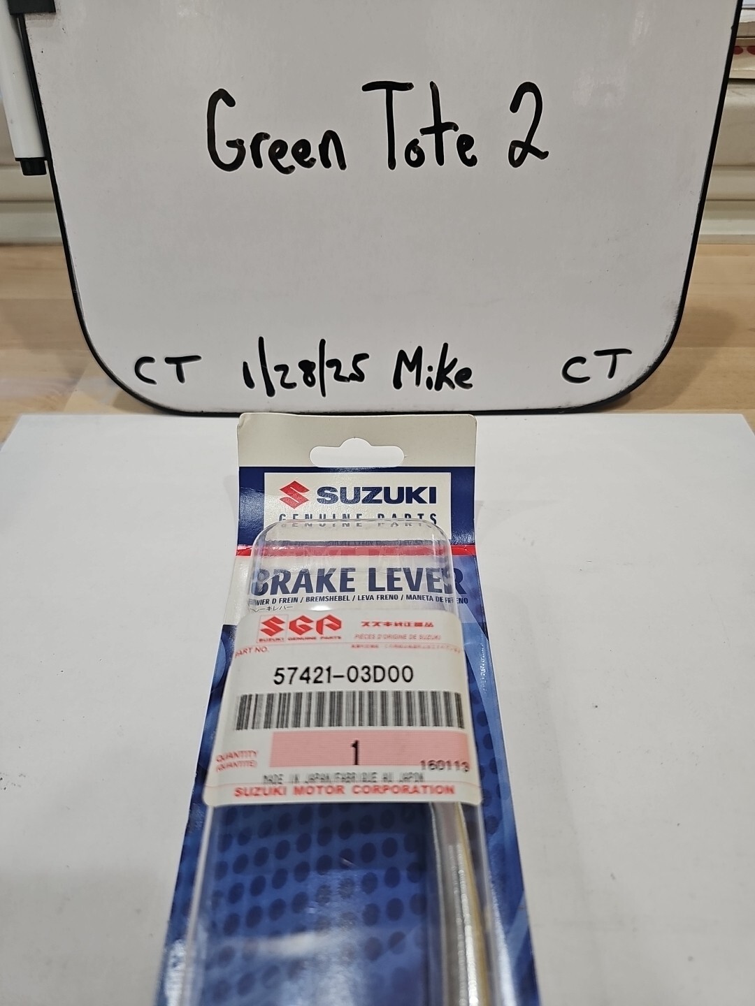 The product is a genuine OEM Suzuki part with the manufacturer part number 57421-03D00. It is a brake lever designed specifically for Suzuki vehicles. The part does not come with a warranty. Customers can trust that this OEM part will fit and function correctly for their Suzuki vehicle, ensuring quality and reliability.