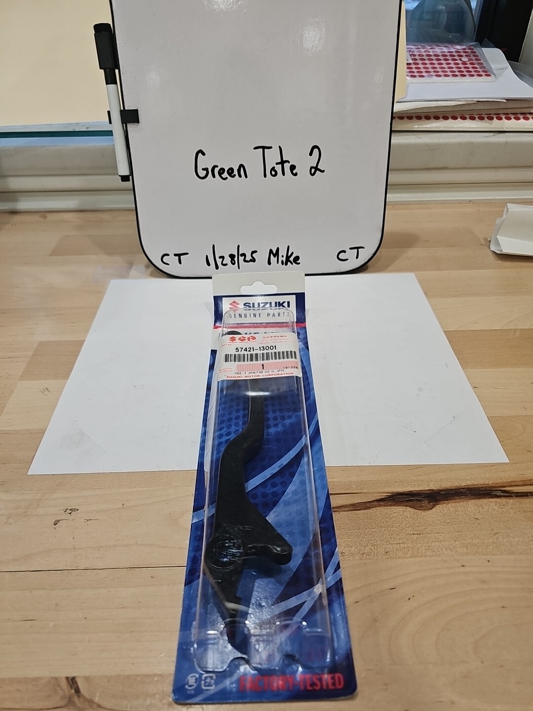 The Suzuki OEM Part 57421-13001 is a genuine OEM brake lever manufactured by Suzuki. It does not come with any warranty, but being genuine OEM ensures it meets the quality standards set by Suzuki. This part is essential for the proper functioning of the brake system in Suzuki vehicles and is designed to fit specific models. Customers can trust in the authenticity and reliability of this Suzuki brake lever to maintain the performance and safety of their vehicle.
