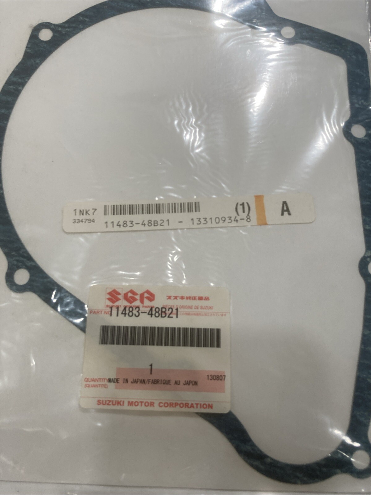 The product is a Suzuki OEM starter gasket designed for various Suzuki models including the GSF1200 Bandit, GSXR1100, and GSX1100 Katana. The gasket has the OE/OEM Part Number 11483-48B21 and Manufacturer Part Number 11483-48B21, ensuring compatibility with the specified Suzuki models. This gasket is crucial for maintaining the proper seal and function of the starter in the engine, helping to prevent leaks and ensure optimal performance of the motorcycle. Ideal for those looking for a genuine Suzuki replacement part for their specific models.
