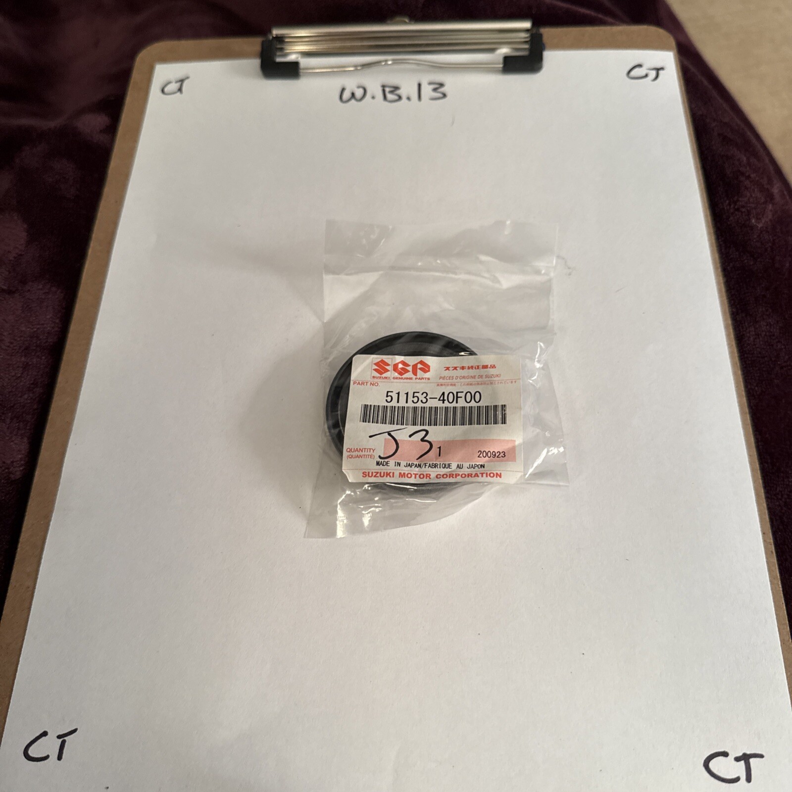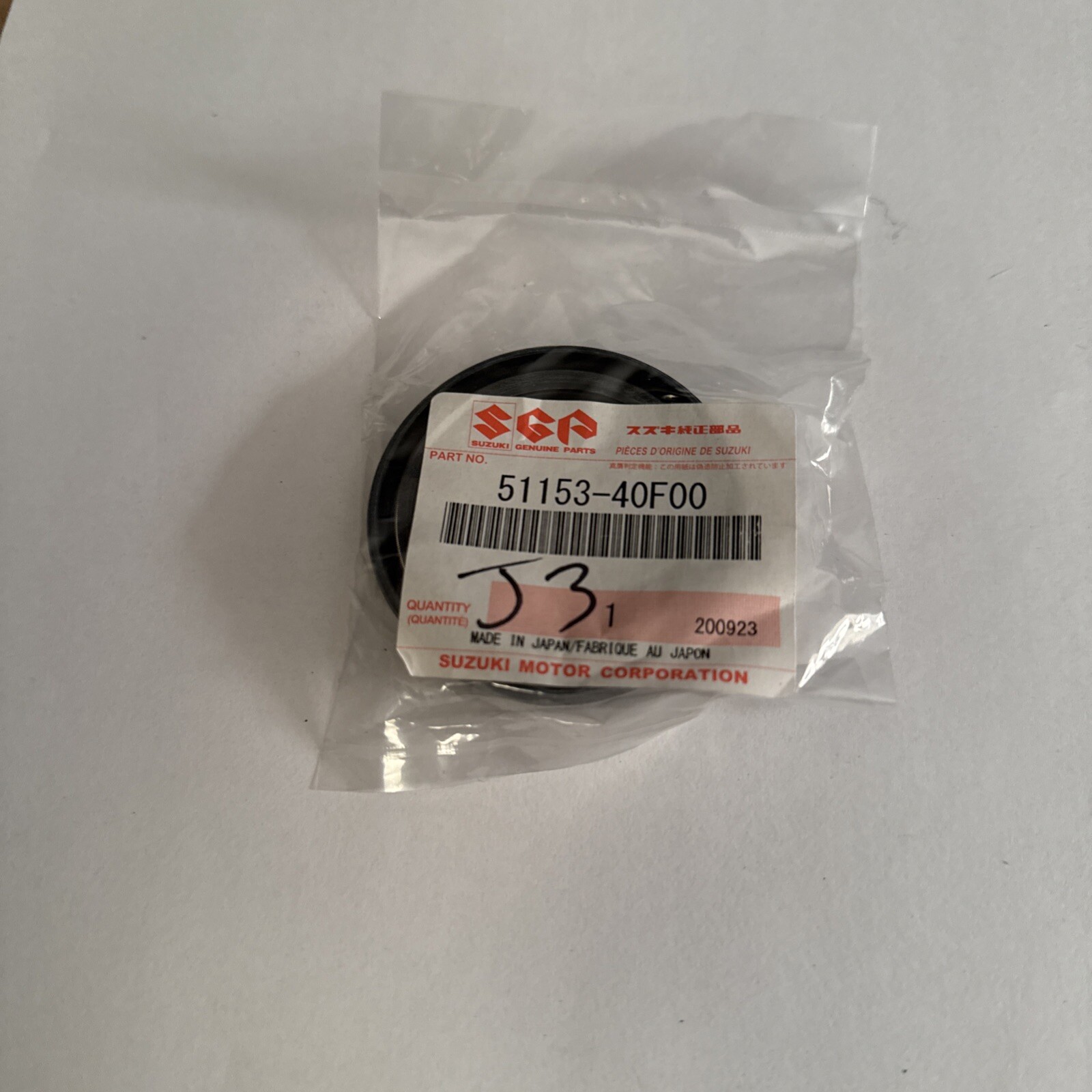 The product is a Suzuki OEM Oil Seal with part number 51153-40F00. This oil seal is designed specifically for Suzuki vehicles, ensuring proper fit and performance. It is a genuine Suzuki part, guaranteeing high quality and compatibility with the vehicle's engine components. The oil seal plays a crucial role in preventing oil leakage and maintaining optimal engine performance, making it an essential component for vehicle maintenance and longevity.