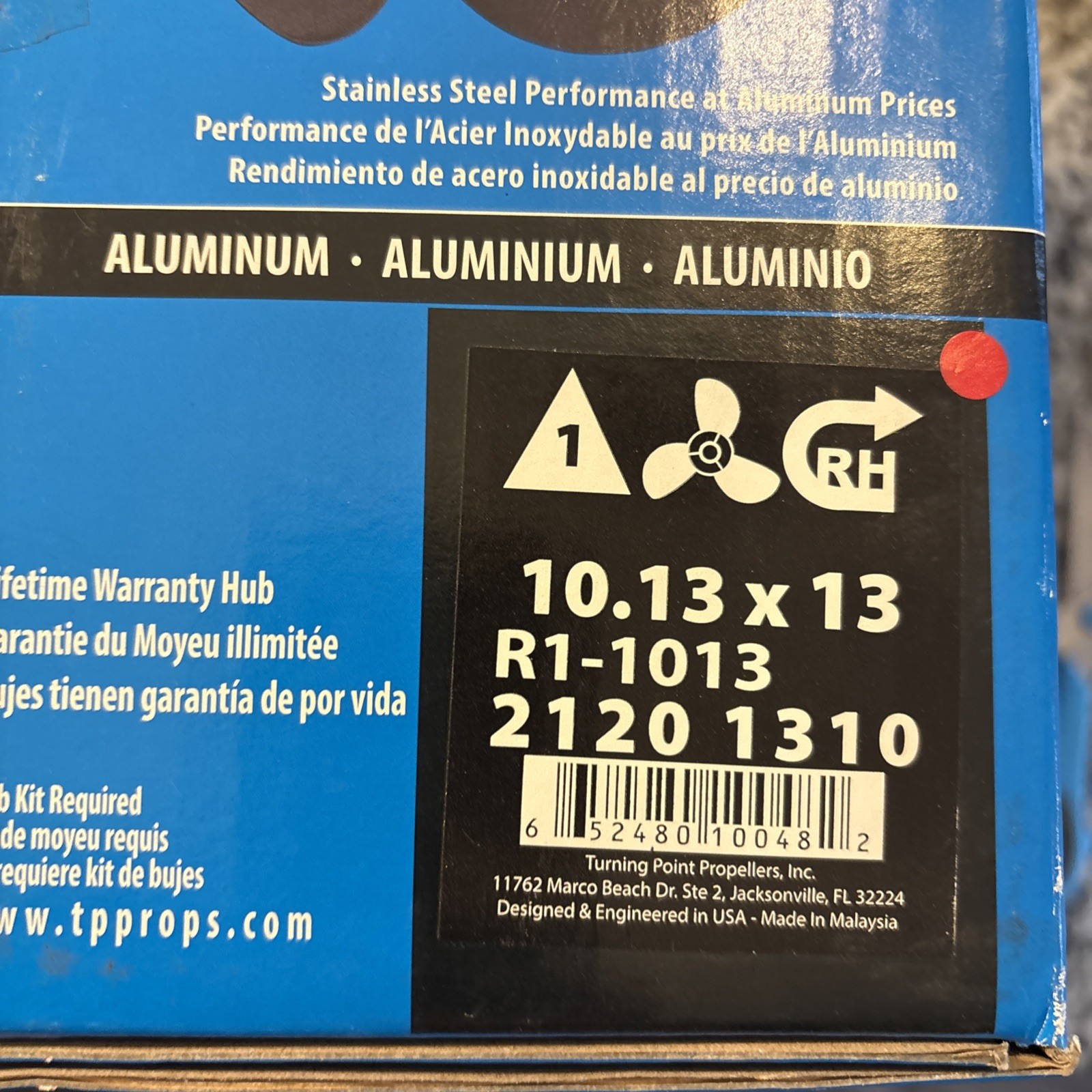 Turning Point Hustler – Right Hand – Aluminum Propeller – R1-1013 – 3-Blade – 10 – box opened