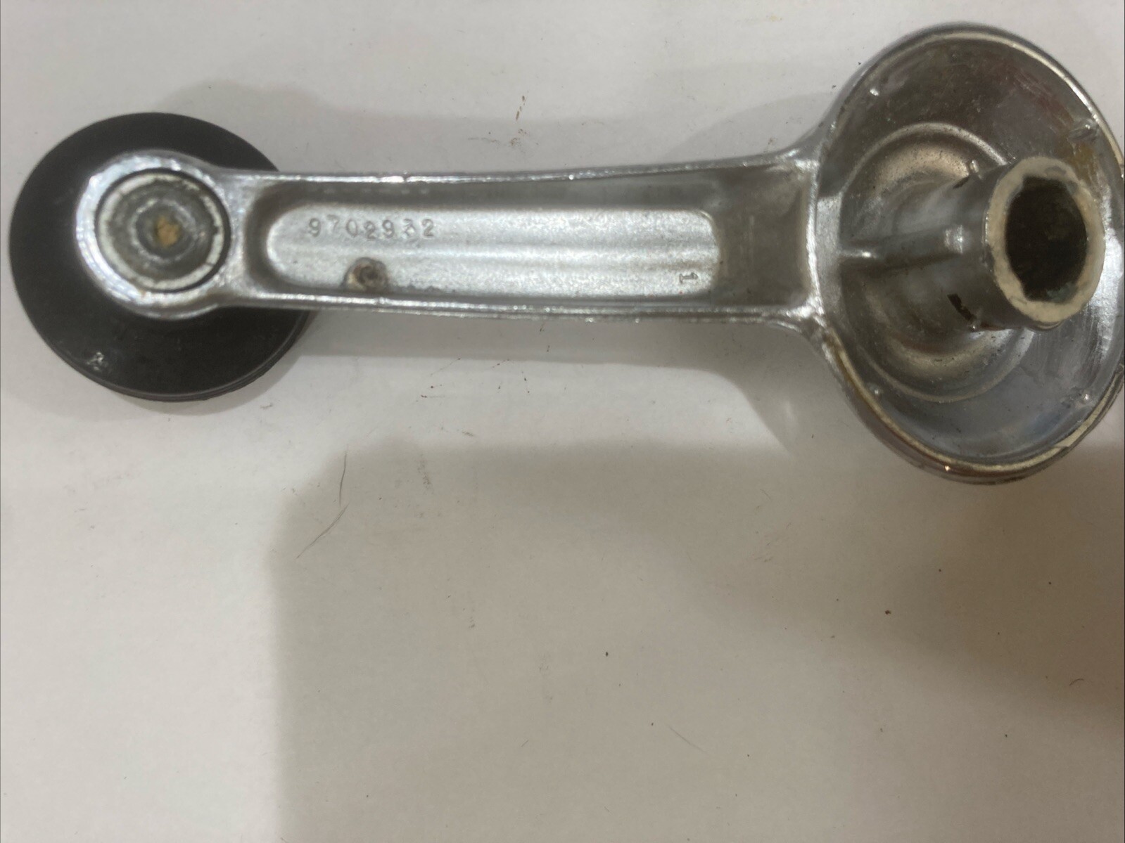 The product is a single used OEM GM window crank handle, with the part number 9702932. It is designed as a replacement window crank for vehicles, specifically from the General Motors brand. The handle is a single piece and is intended for use in adjusting the windows of the vehicle. It is a genuine OEM part, ensuring compatibility and quality in replacing or repairing the window crank mechanism in GM vehicles.